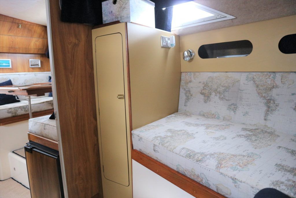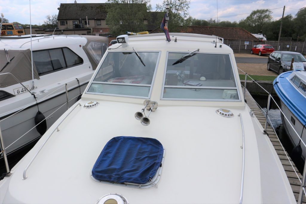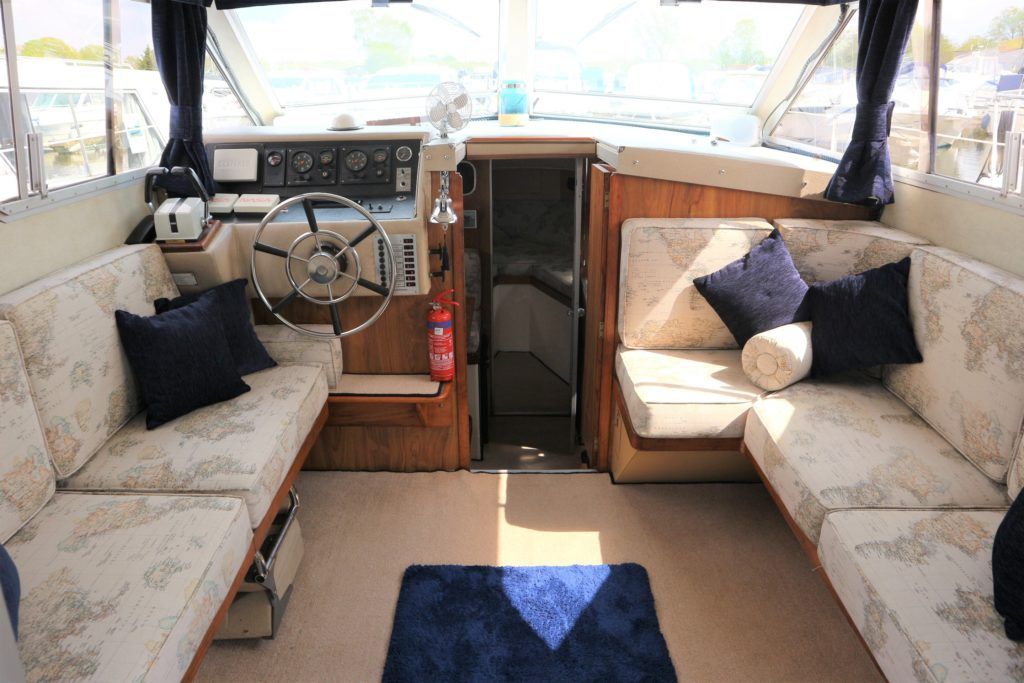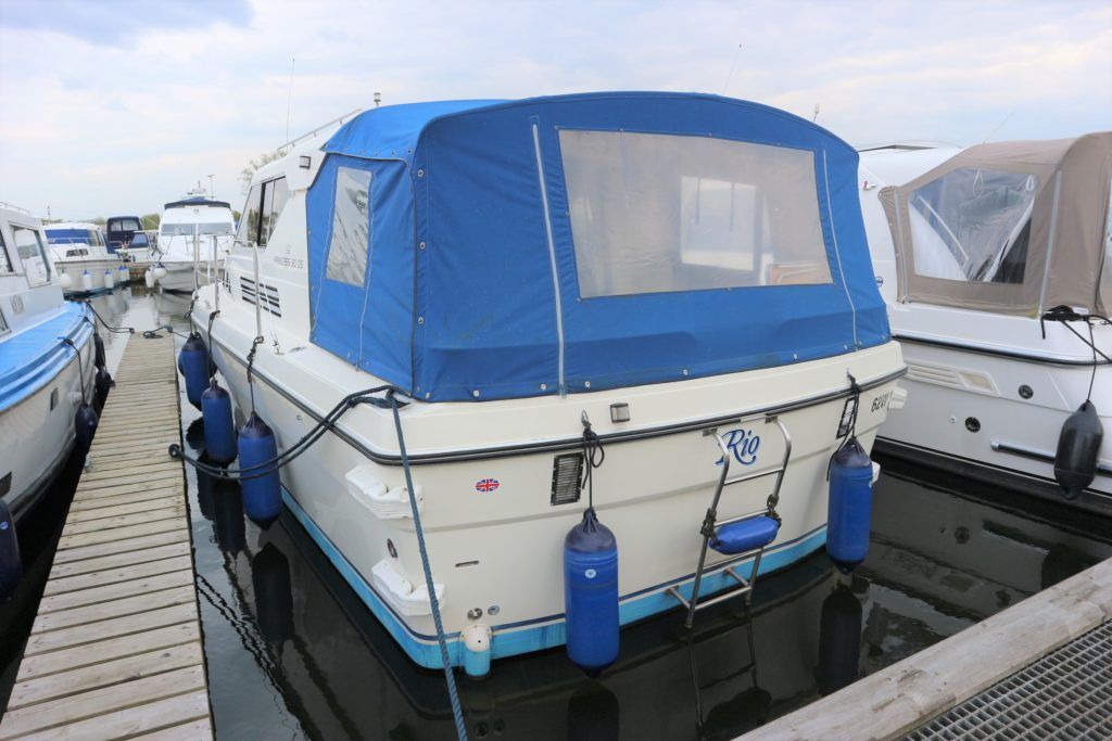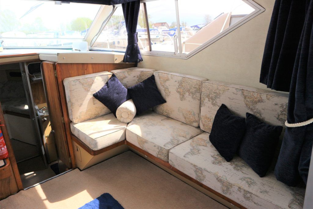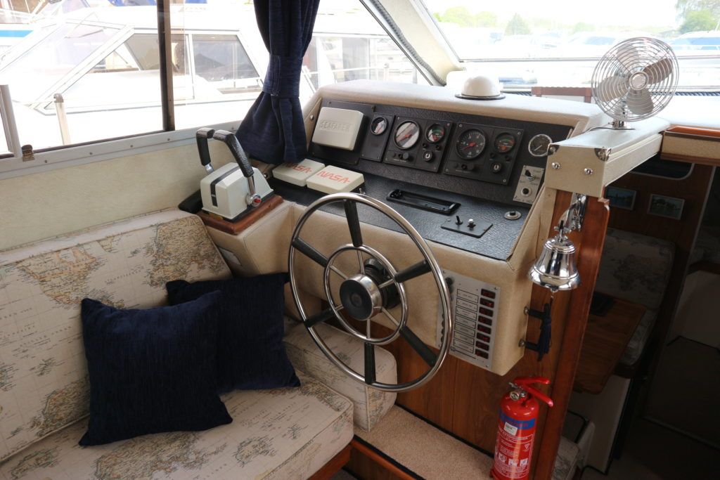 PRINCESS 30 DS – 1982 – Twin Volvo 75hp Diesel engines on shafts. Up to 6 berth accommodation with 1 x electric toilet/shower compartment. Specification including shore power, battery charger, warm air heating, immersion, speed & depth log, anchor winch. BSC 06/23. A very well presented motor cruiser with adaptable sleeping accommodation and the benefit of diesel engines & shaft drive.