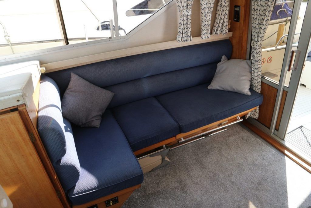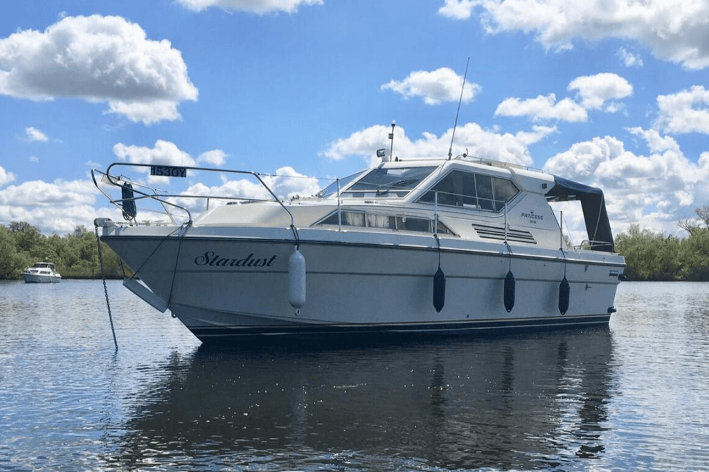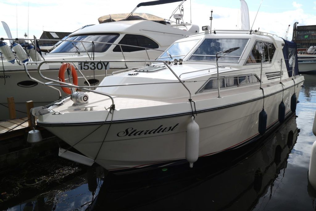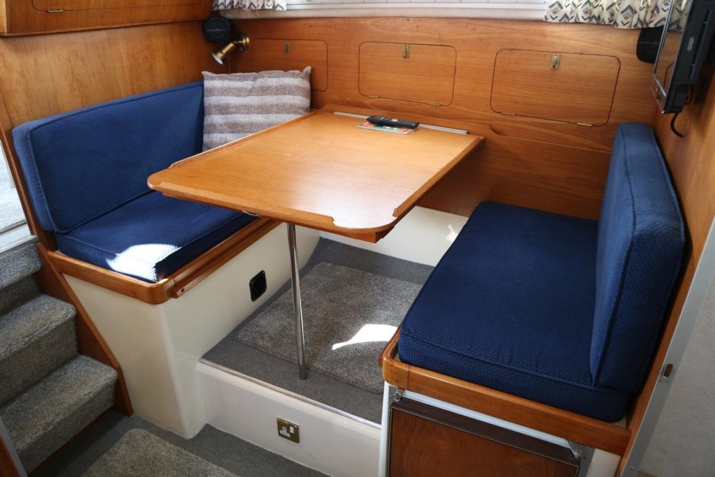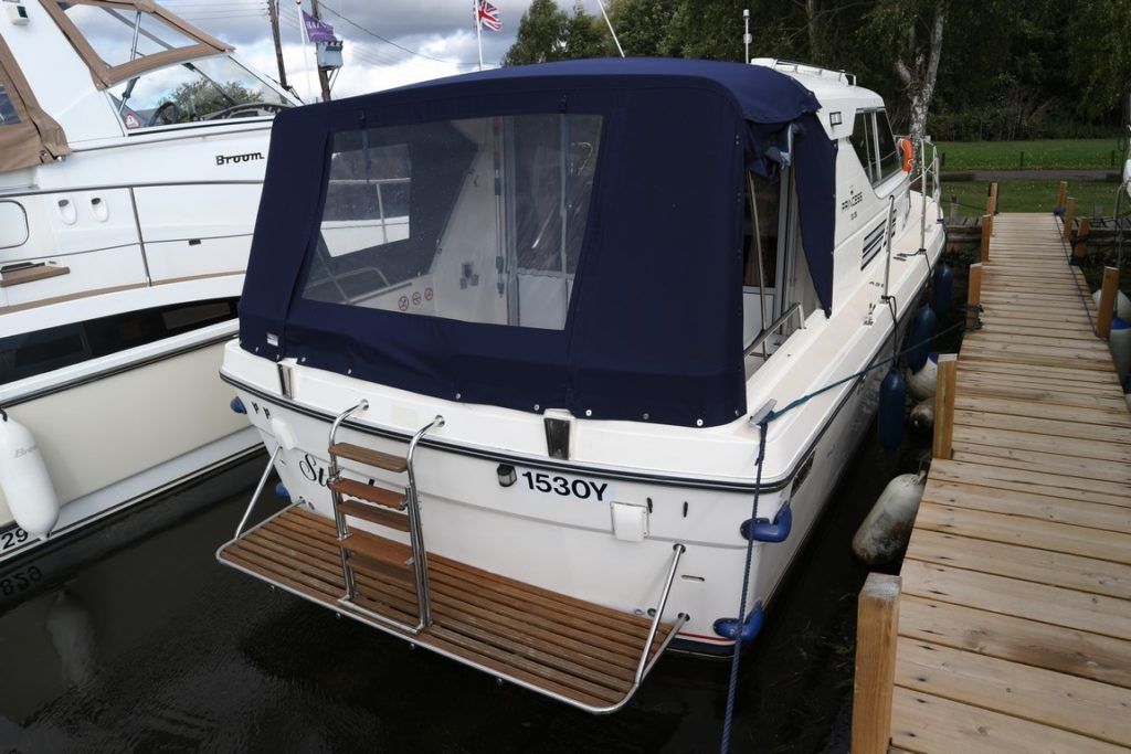 PRINCESS 30DS – 1987 – Powered by twin Volvo 151b 150hp petrols. 6 berth accommodation with toilet and shower. Specifation to include; Webasto warm air heating, holding tank, trim tabs, VHF and shore power supply with 240v sockets. New canopy 2018. Antifoul 2018 and engine oil, sparkplugs and filters replaced 2019. A well presented example, benefiting from investment by recent owners!