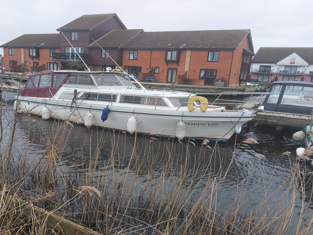 Princess 32 – Circa 1979 – Twin ford 78hp diesel engines through stern drives. 5 berth accommodation with a single toilet/shower compartment. Specification to include; electric windlass, GPS chart plotter, shore power, VHF radio, speed and depth log, remote control spotlight, battery charger. “Happy Jax” is a well specified example of her type, and benefits from having a range of navigation equipment. NYA stock, sold as traded in. More pictures to follow. BSC 14/05/26.