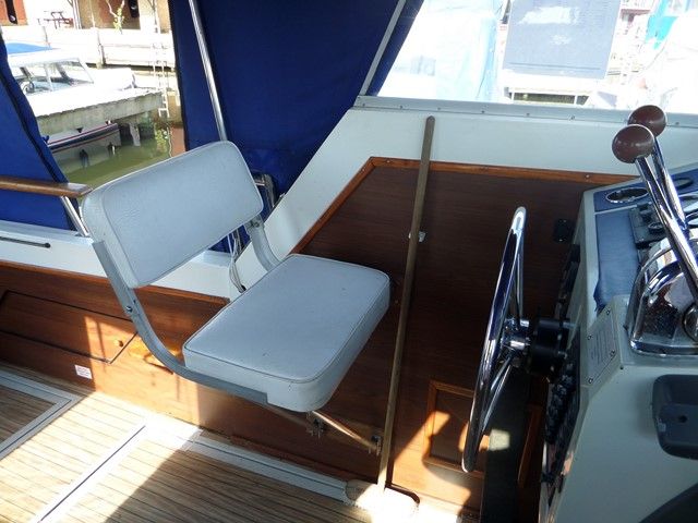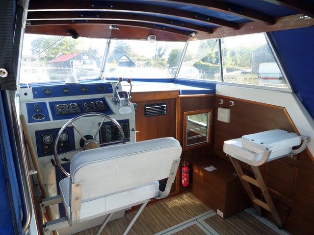 PRINCESS 32 – 1974, 2 x Volvo Penta 75Hp diesel engines, 5 berths in 1 cabin, 1 x toilet & shower, Boat Safety Certificate. Spec including: full canopy, shore power, hot air heating system, folding windscreens & radar arch, calorifier, gas ring hob, oven & grill. With a low air draft and a spacious cockpit, the Princess 32's are a classic motor cruiser for a family/couple!