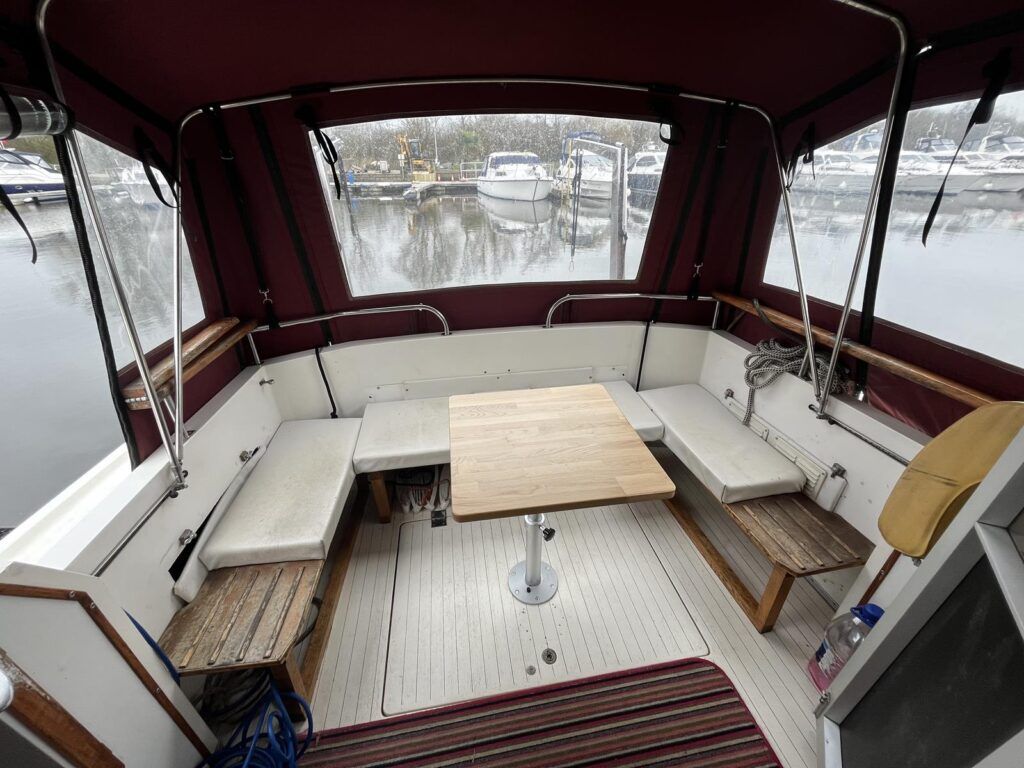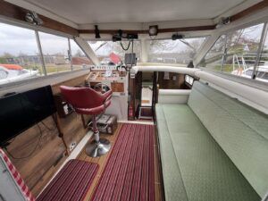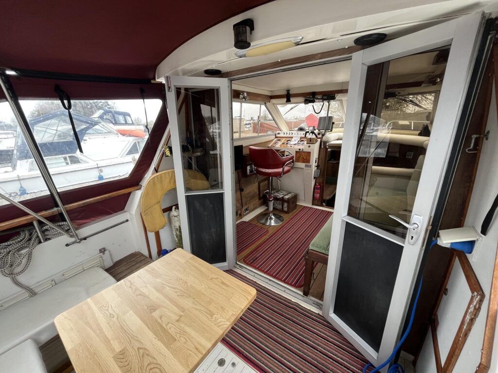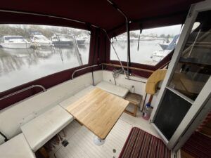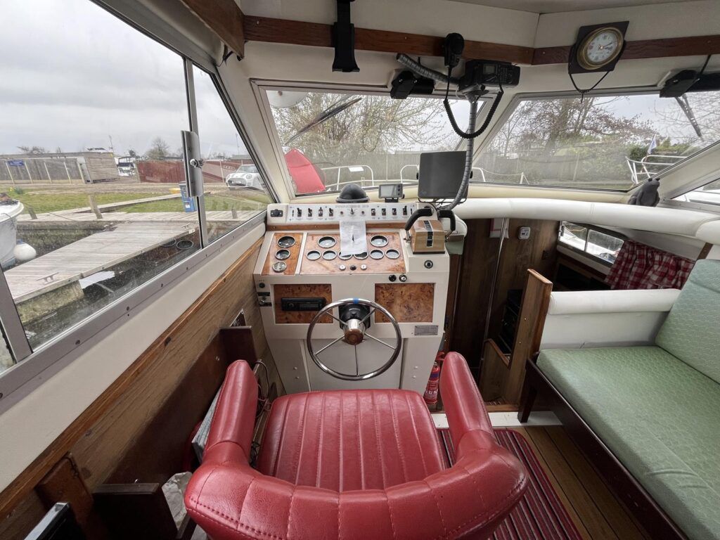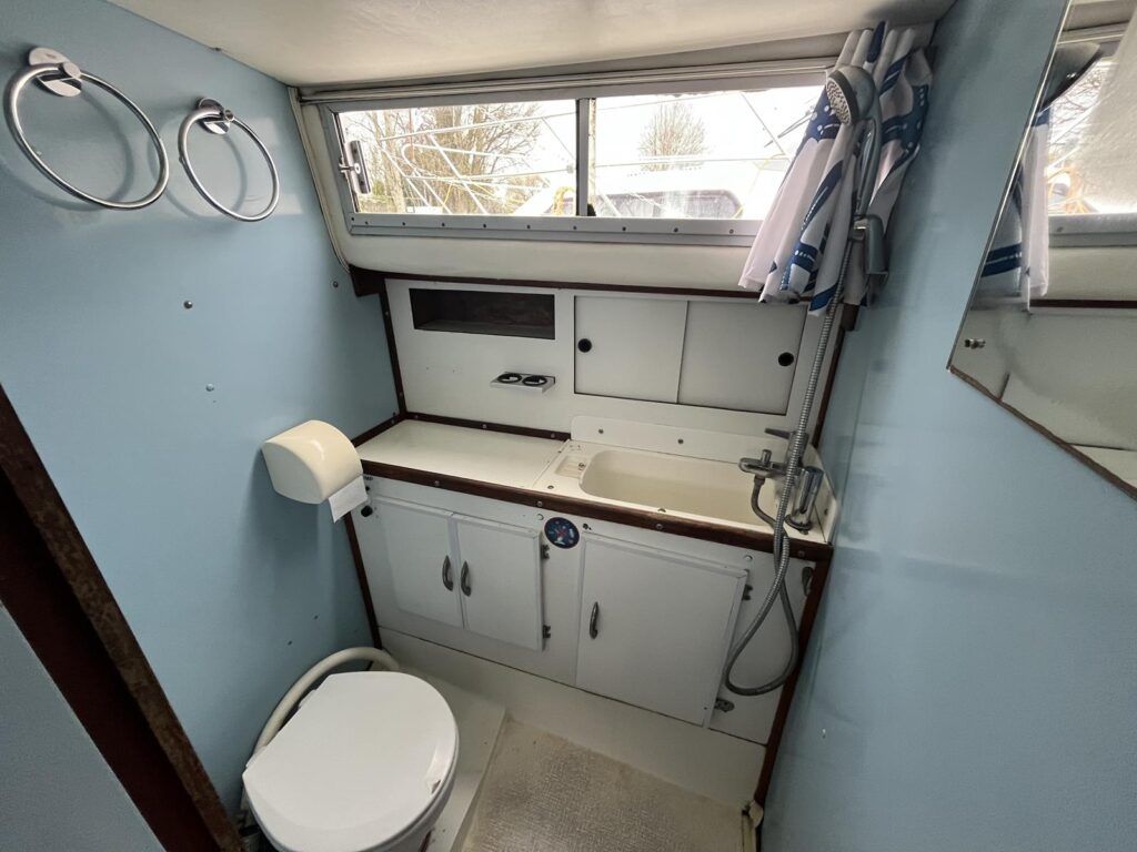 Princess 33 MK1 – 1979 – 2x Ford Mermaid 80hp diesel engines in shafts. 6 berths with 1 electric toilet & shower. Specification to include; Shore power, battery charger, hydraulic steering, davits, calorifier, immersion, holding tank and more. Boat Safety Certificate Feb 2027. Antifouled and serviced 2024. The Princess 33 is a highly versatile boat, offering ample space for a family to cruise comfortably on inland waterways, while also being suited for coastal work.