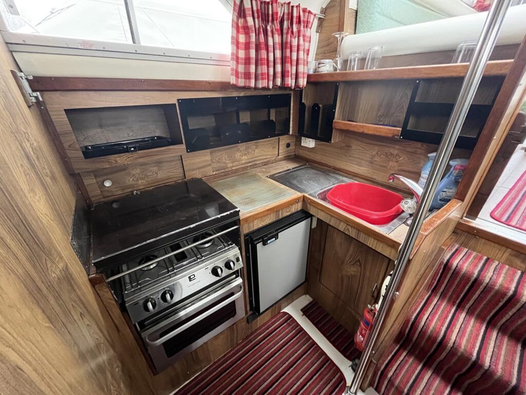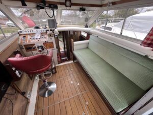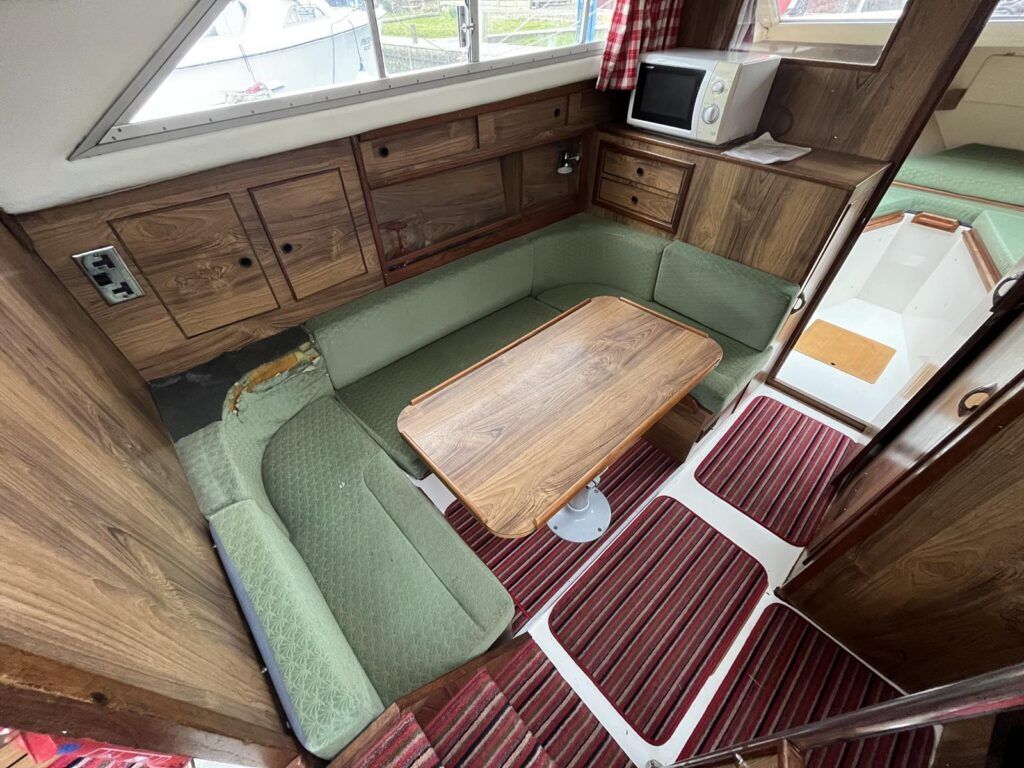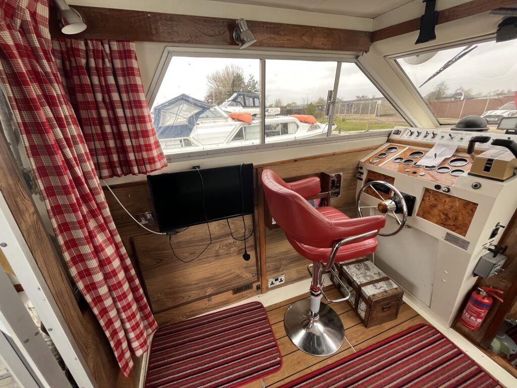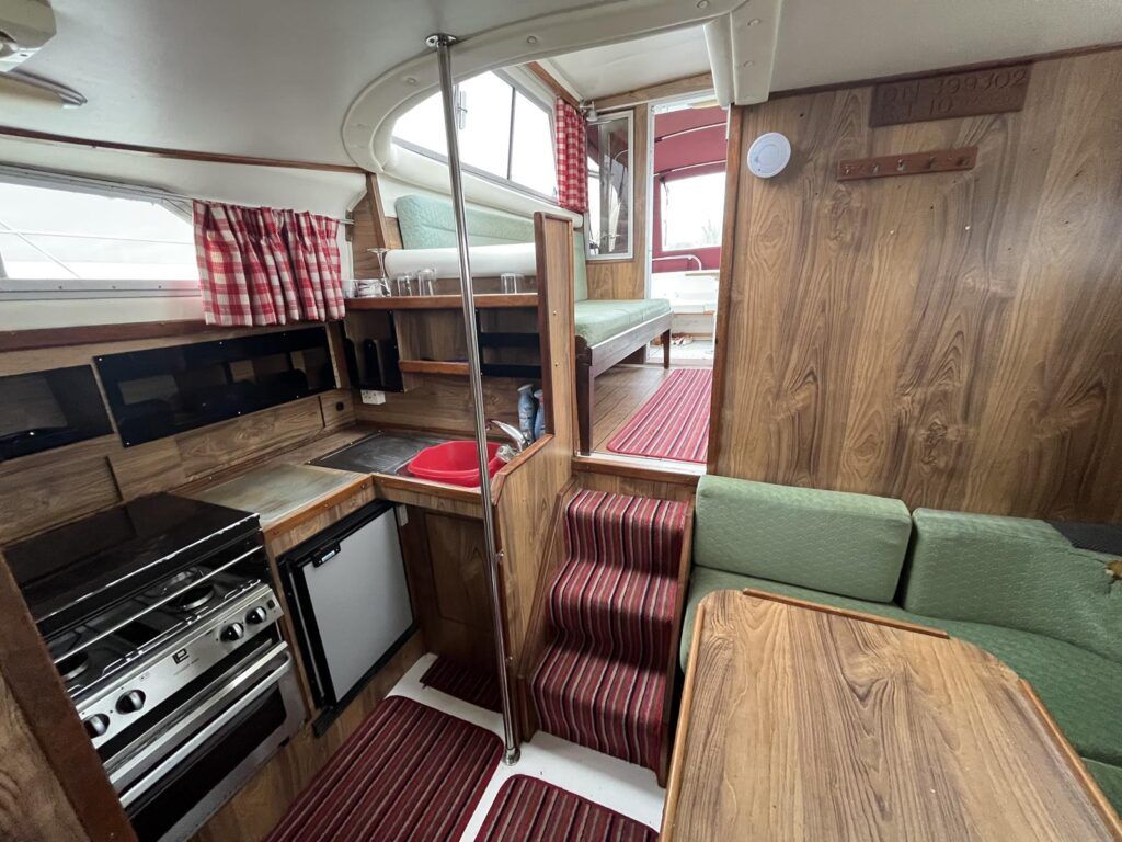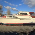 Princess 33 MK1 – 1979 – 2x Ford Mermaid 80hp diesel engines in shafts. 6 berths with 1 electric toilet & shower. Specification to include; Shore power, battery charger, hydraulic steering, davits, calorifier, immersion, holding tank and more. Boat Safety Certificate Feb 2027. Antifouled and serviced 2024. The Princess 33 is a highly versatile boat, offering ample space for a family to cruise comfortably on inland waterways, while also being suited for coastal work.