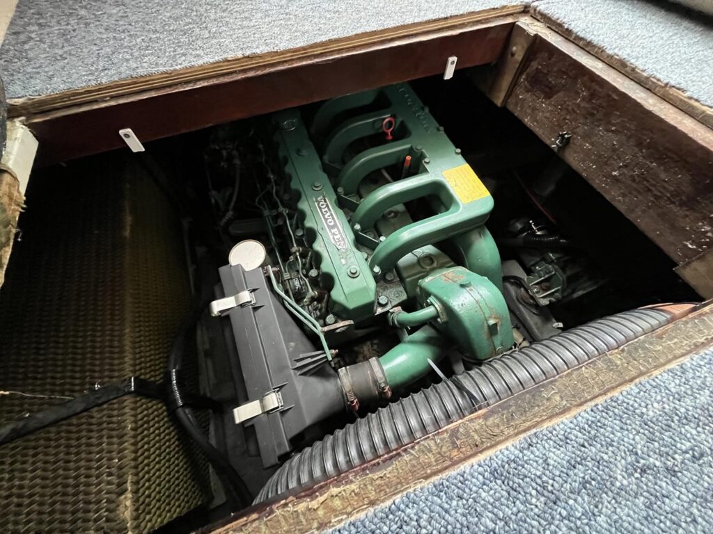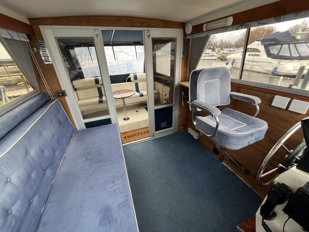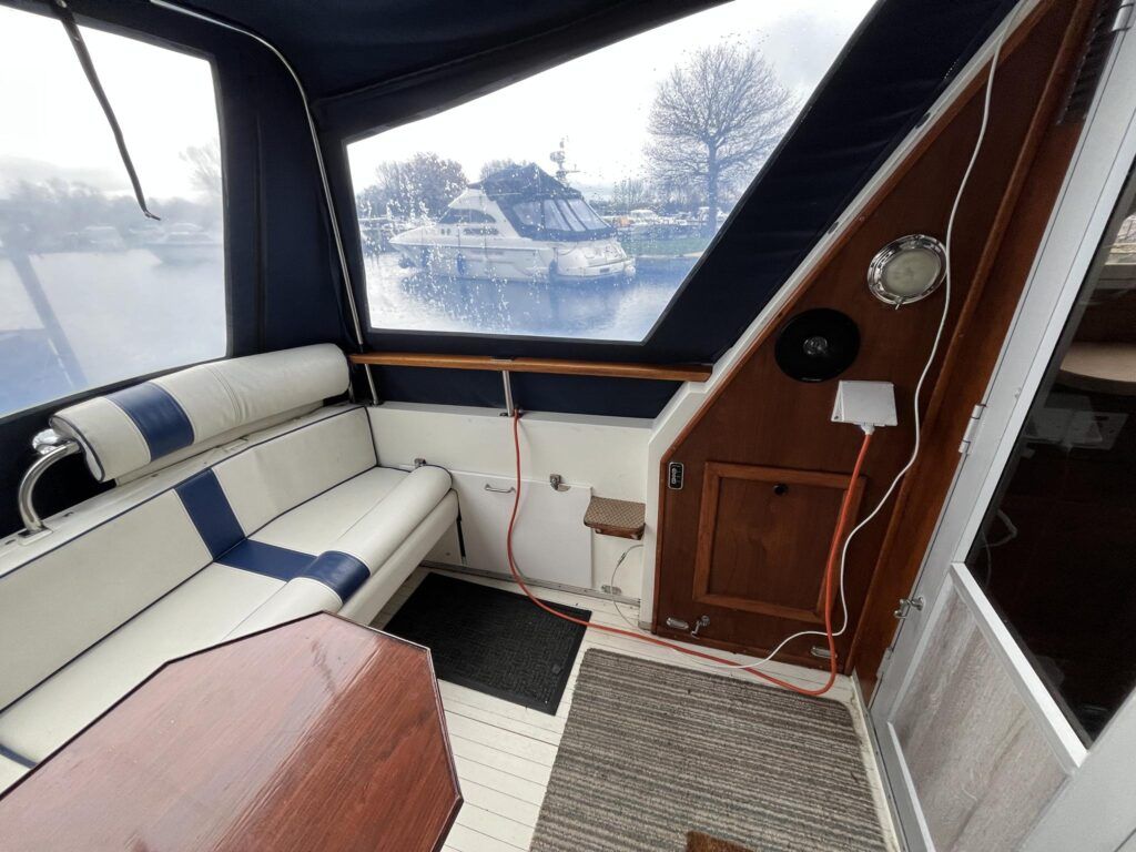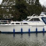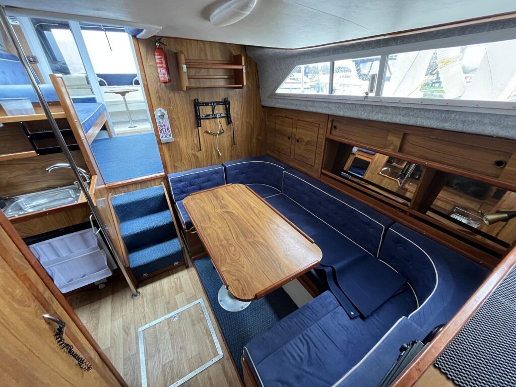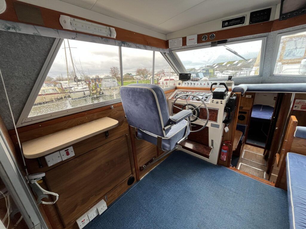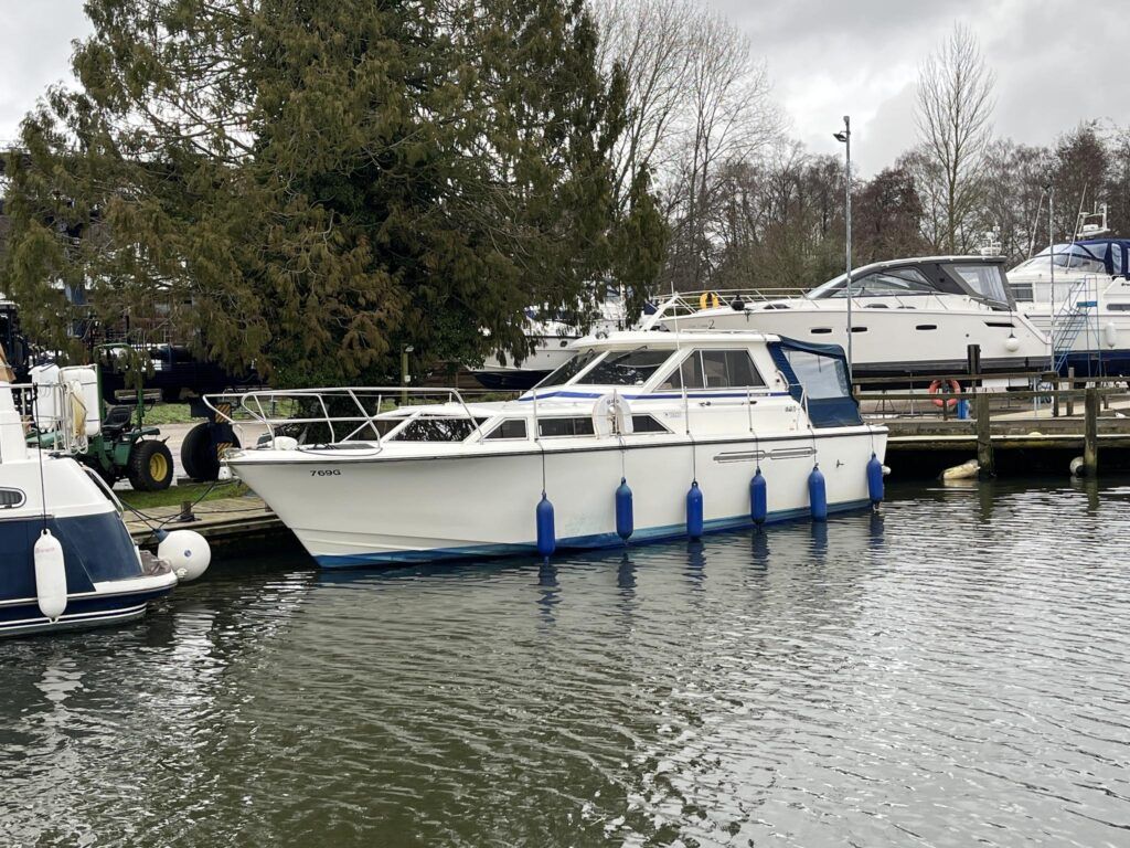 Princess 33 – Circa. 1980 – Powered by twin Volvo MD40 84hp diesel engines on shafts . Up to 6 berth accommodation with one toilet and shower. Good specification including shore power, battery charger, immersion, warm air heating, inverter, Hummingbird Helix5, BSC 09/2026 . A nice example of these popular cruisers and presented in good order for her age. Ideal for inland or light coastal pursuits. NYA Stock – Sold with 3 month engine & gearbox warranty.