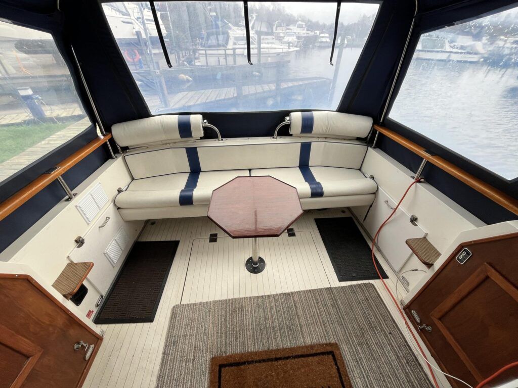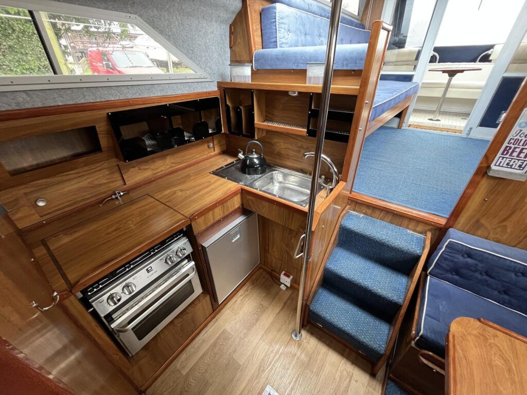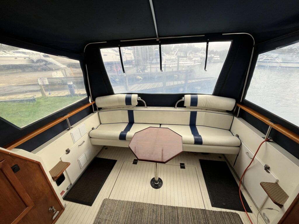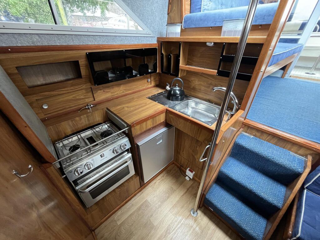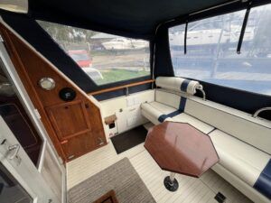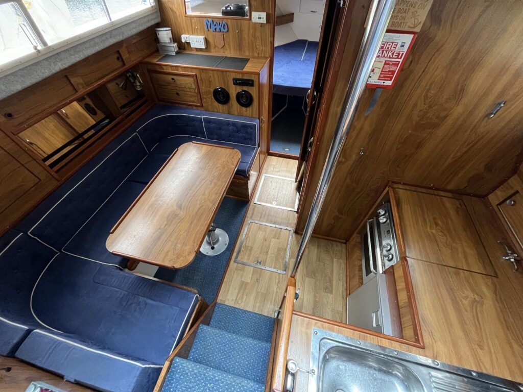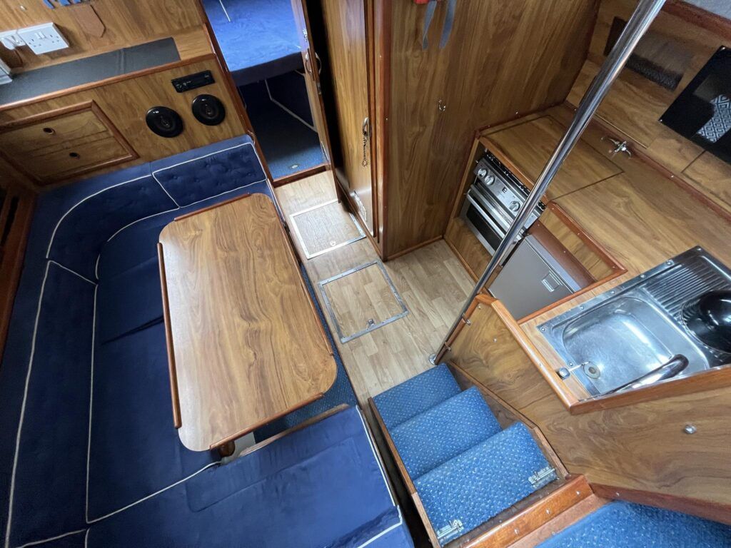 Princess 33 – Circa. 1980 – Powered by twin Volvo MD40 84hp diesel engines on shafts . Up to 6 berth accommodation with one toilet and shower. Good specification including shore power, battery charger, immersion, warm air heating, inverter, Hummingbird Helix5, BSC 09/2026 . A nice example of these popular cruisers and presented in good order for her age. Ideal for inland or light coastal pursuits. NYA Stock – Sold with 3 month engine & gearbox warranty.