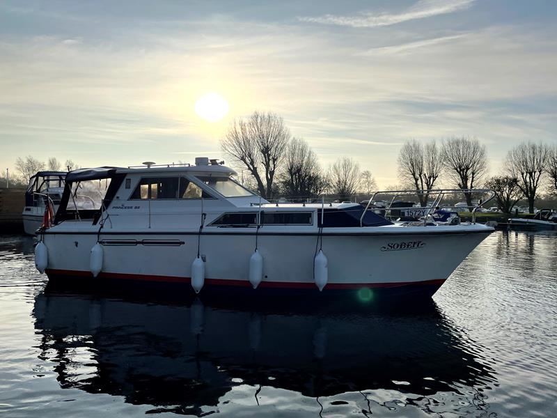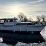 PRINCESS 33 MK1 – 1977 – Powered by twin Volvo AQ140A 140hp petrol’s through sterndrives – 6 berth accommodation with toilet and shower – Specification to include; warm air heating, shore power supply with 240v sockets, battery charger and immersion, 12v supply, 4 burner hob, oven and grill, hot and cold water supply, refrigerator. Engine timings belts 2020 and new canopy with various other engine works listed by vendor. In current ownership for 3 years and used to cruise the Broads.