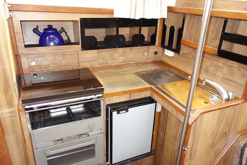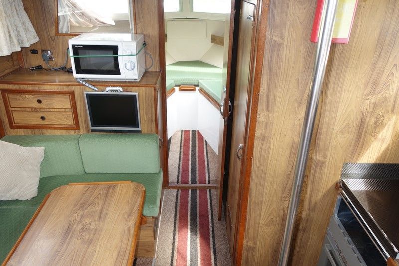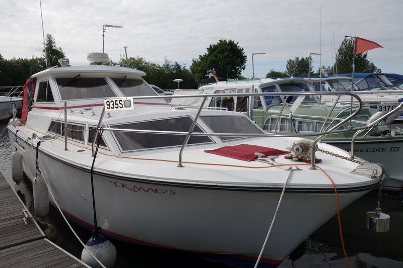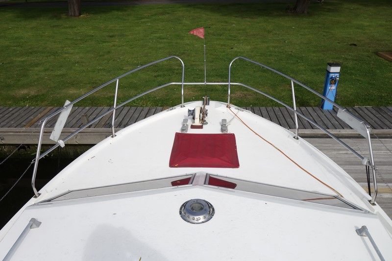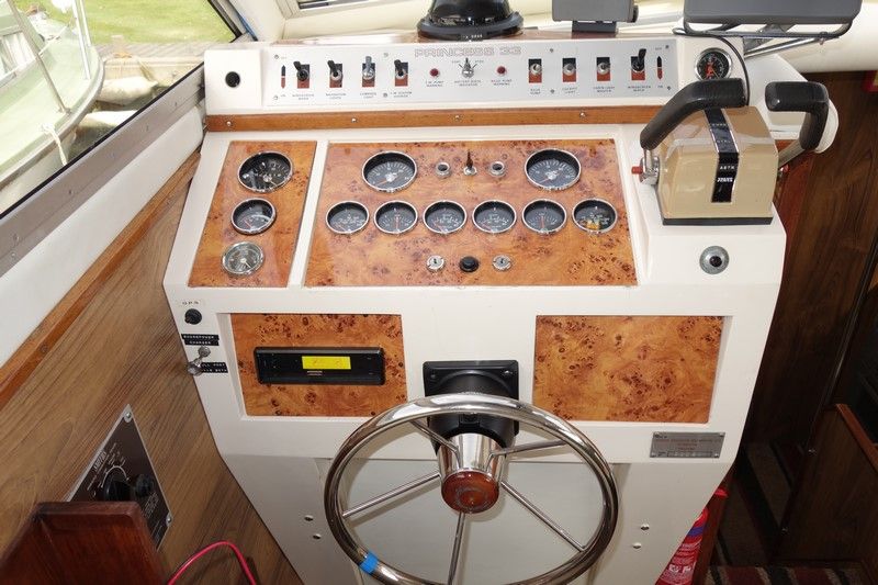 PRINCESS 33 – 1977 – 2 x Ford Mermaid 80Hp diesel engines serviced 2014, 6 berths in 3 cabins, 1 x electric toilet (new in 2014) & shower, New BSC until 2019. Shore power, battery charger, Webasto heating, oven & grill, fridge, VHF, radar, depth log, antifouled 2014. Great all year round cruiser with excellent accommodation space