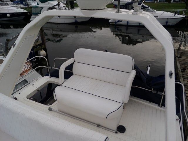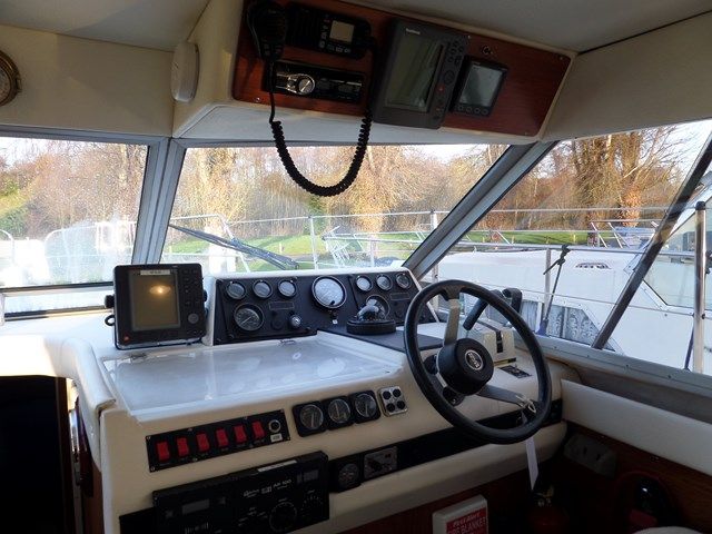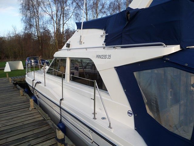 PRINCESS 35 – 1985, 2 x Volvo TAMD40B 165Hp diesel engines, 4 berths in 2 cabins (plus 2 in saloon), 1 x toilet & shower, Boat Safety Certificate until: 2014. Generator, bow thruster, trim tabs, cavernous lazerette, great spec on these ever popular flybridge cruisers! The Princess 35 is a great way to introduce a family into motor cruising. NYA Stock – fully prepared by our Service Centre.