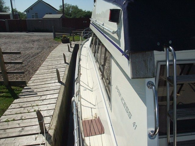PRINCESS 41 – Built 1978, 2 x Volvo TAMD60B 235hp diesel engines, 6 berth including a large forward cabin with an island double berth! very good navigation equipment including autopilot, GPS, large screen Logic chart plotter, Furno Radar and a VHF, heating, shore power. Bow and stern thruster. What a great spec!