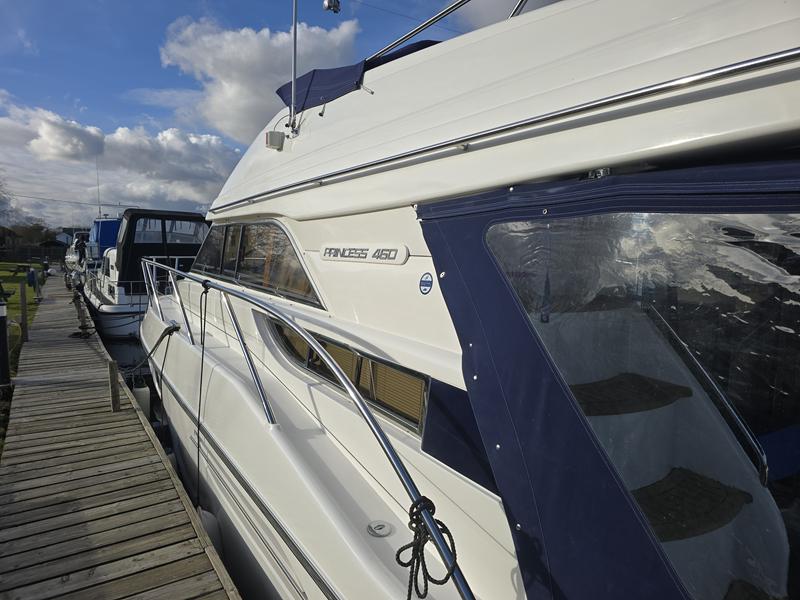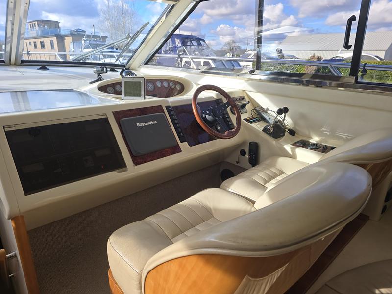 PRINCESS 460 – 2000 – 2x Volvo TAMD74P 480hp diesel engines. 6 berth accommodation in 3 cabins with 2 electric toilets and 2 shower facilities. Specification to include; Generator, bowthruster, warm air heating, electric windlass, shore power supply with battery charger and much more! Engines serviced 2024. A highly regarded offshore cruiser featuring a natural light cherry interior and cavernous accommodation space.