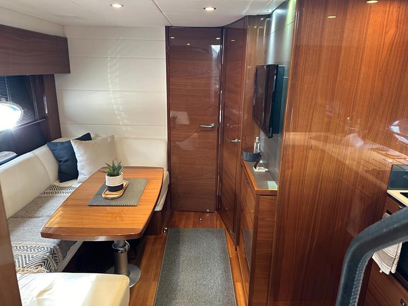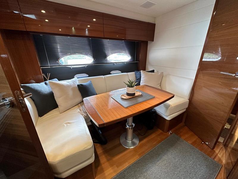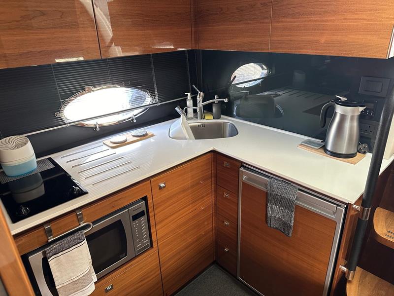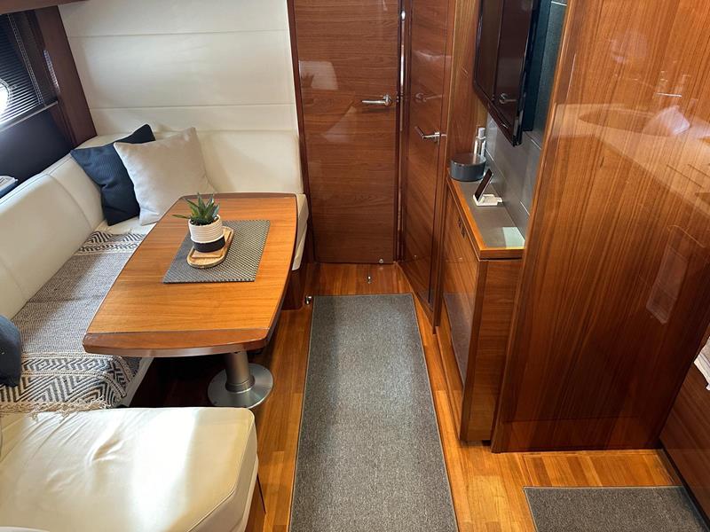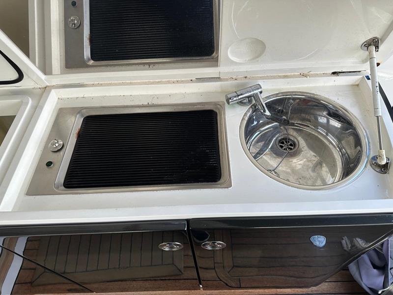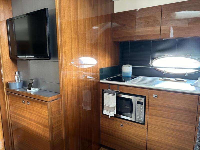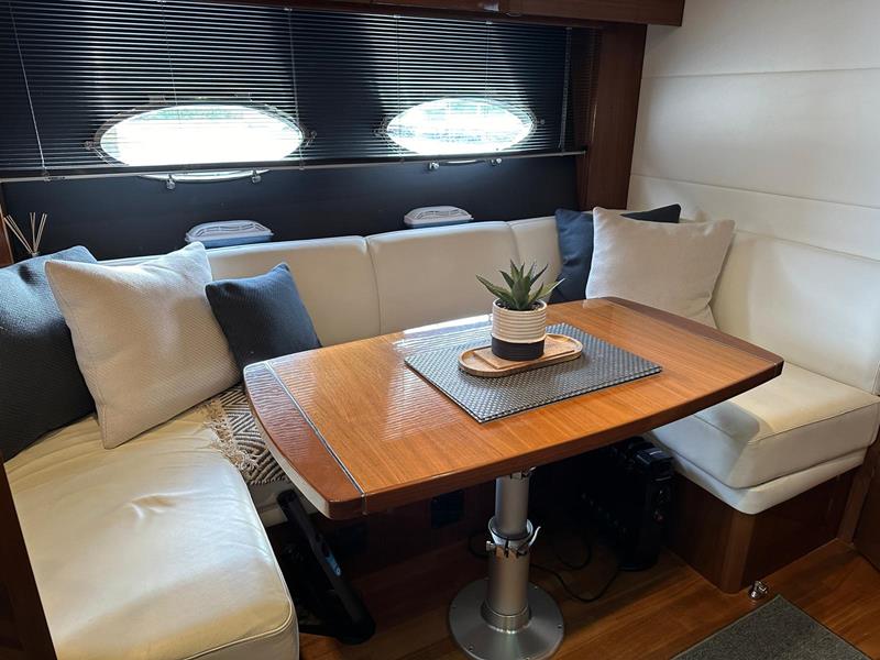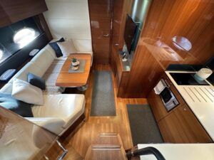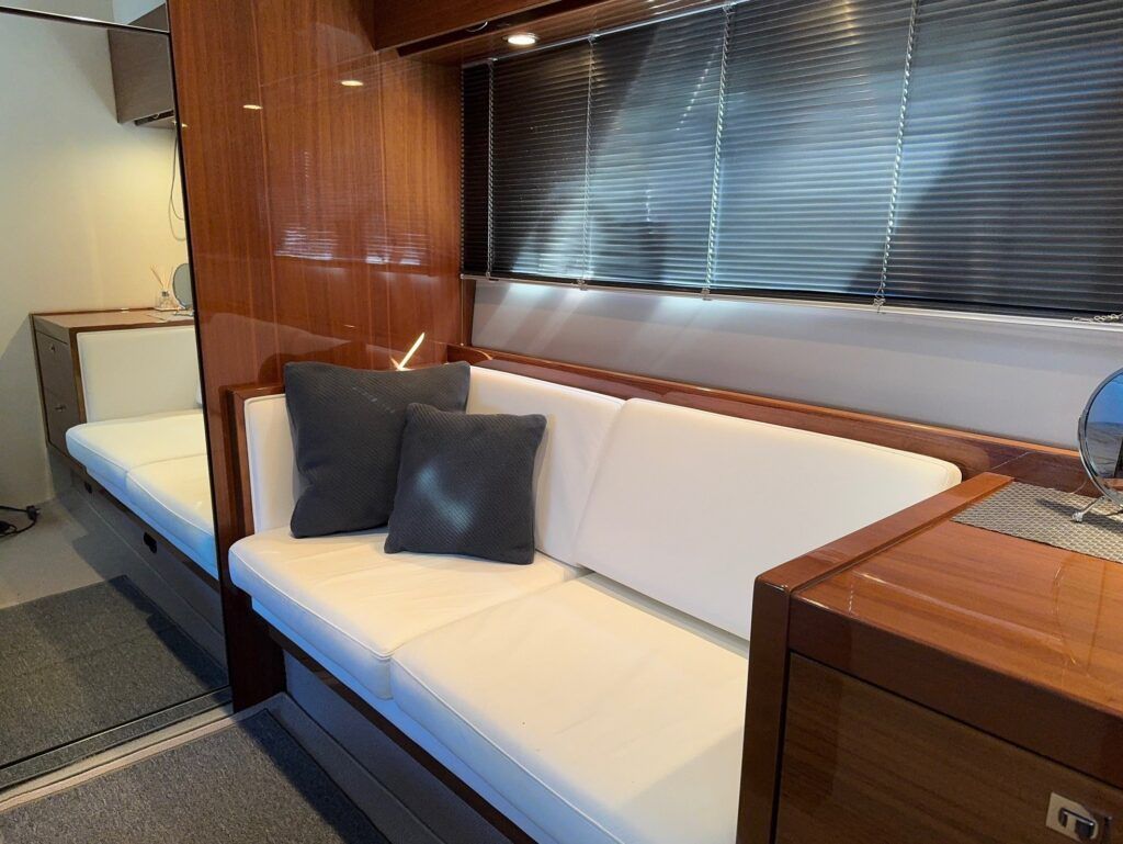 Princess V39 – 2012 – 2x Volvo D6-330DP 330hp diesel engines. Sumptuous four-berth accommodation with an island double berth, toilet with holding tank, and separate shower cubicle. Well specified including: Volvo joystick system, 4Kw generator, hi-low hydraulic bathing platform, bow thruster, autopilot, GPS/chartplotter, radar, AIS, warm air heating, cockpit BBQ/fridge and much more. Serviced and antifouled 2024. BSC 2028. A beautifully kept V39 featuring a contemporary walnut gloss interior and a striking steel grey hull. Viewing by appointment.