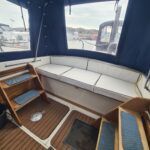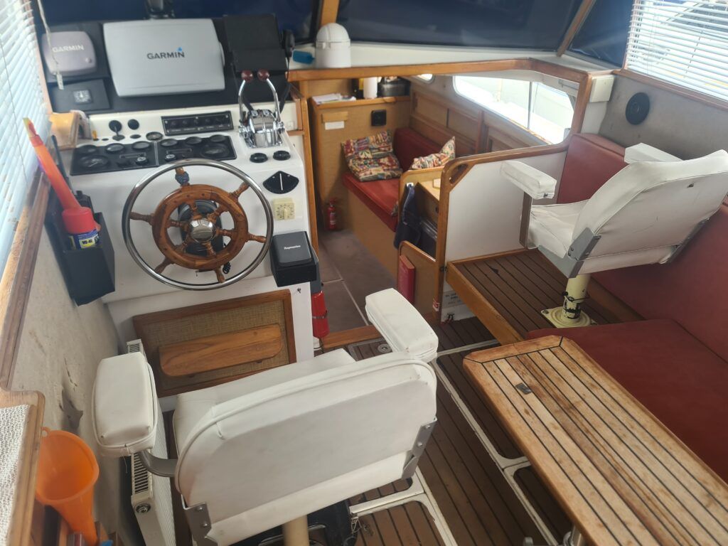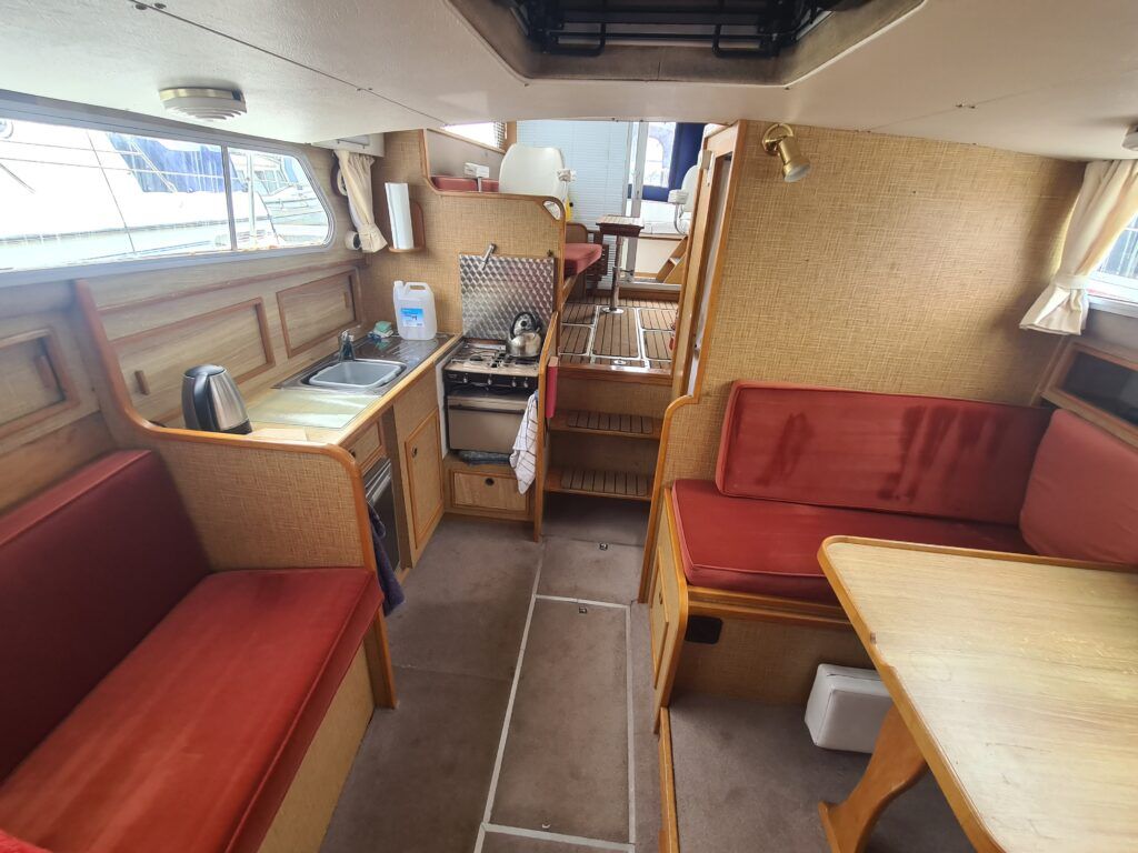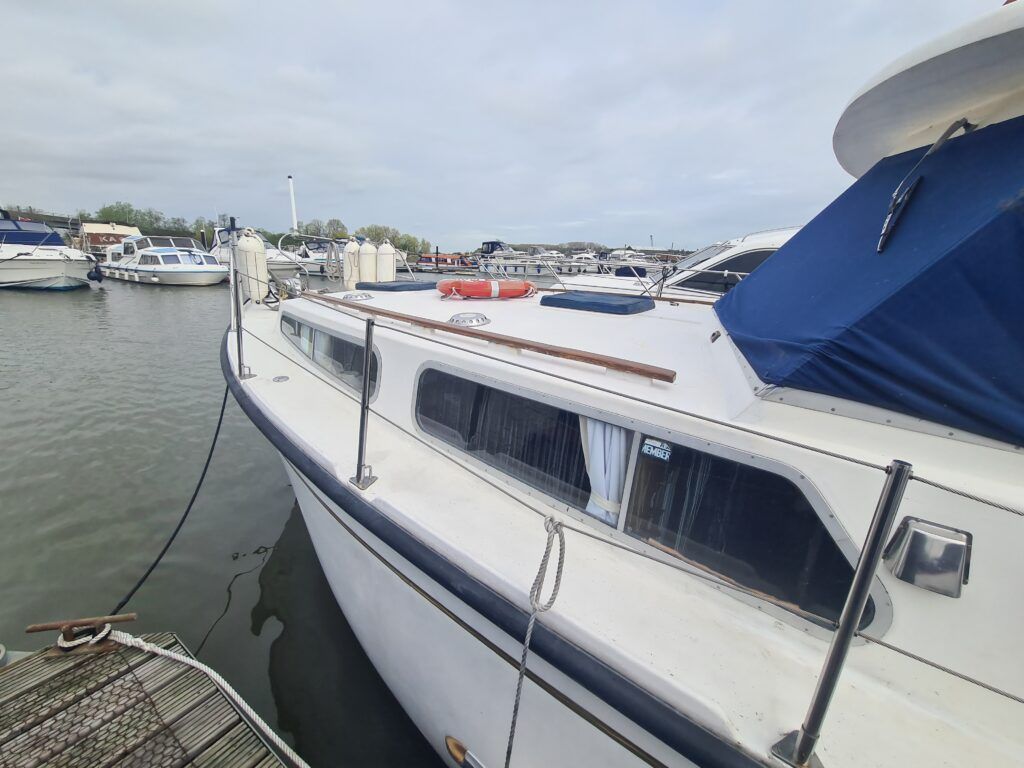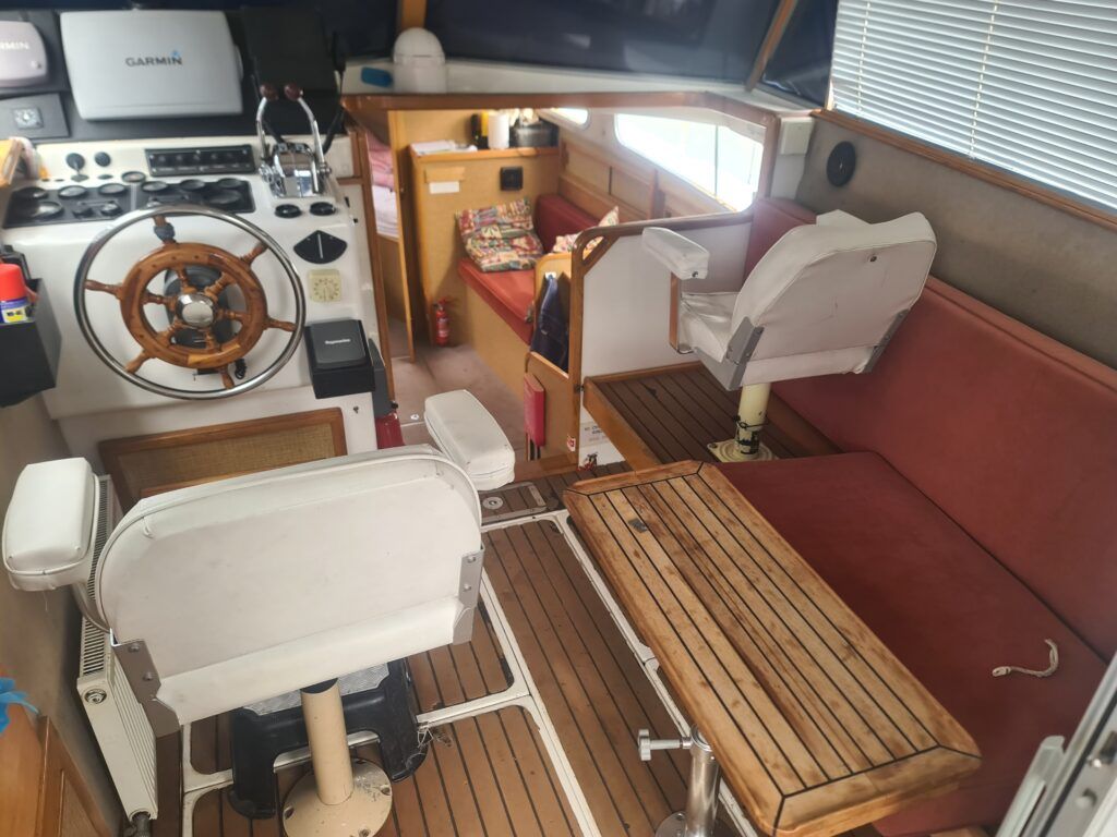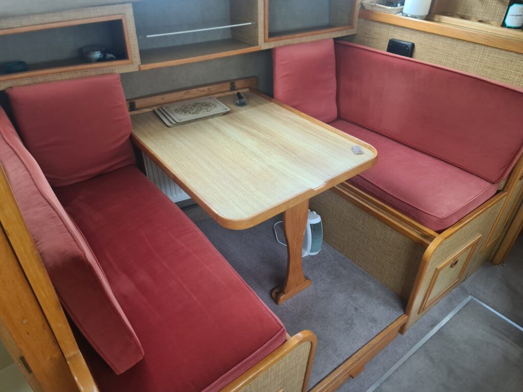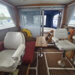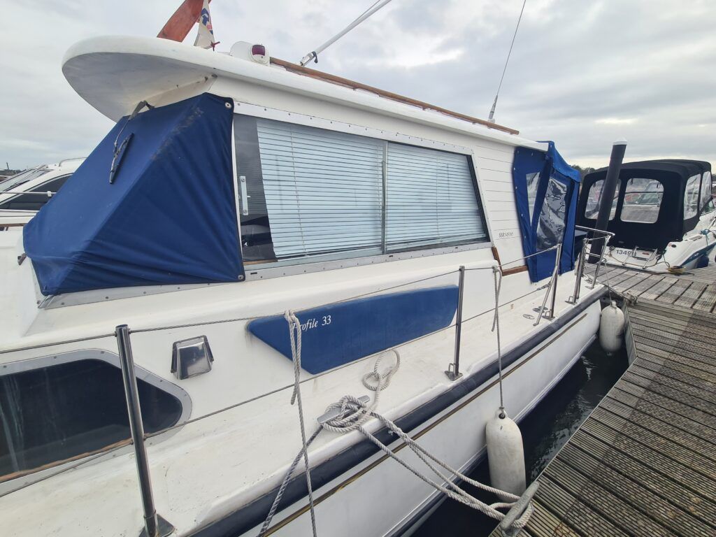 PROFILE 33 – 1988 – twin Volvo MD31A 62 hp diesel engines on shaft, 4+2 berth accommodation, shower , 12v fridge, gas hob oven and grill, shore power, sliding sunroof, radiator diesel heating, holding tank, autopilot, Garmin chart plotter, GPS, copper coat hull, BSC 01-2029, a spacious cruiser that has been cruised in UK and Europe by its current owners.