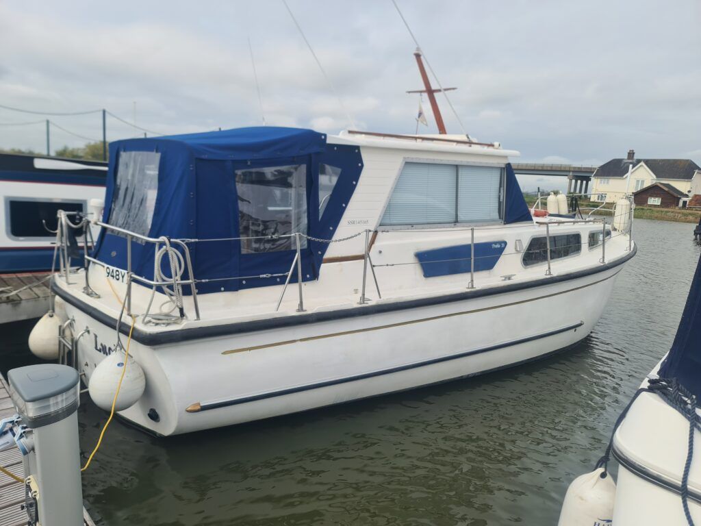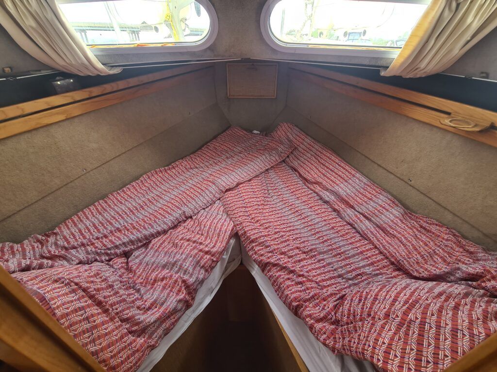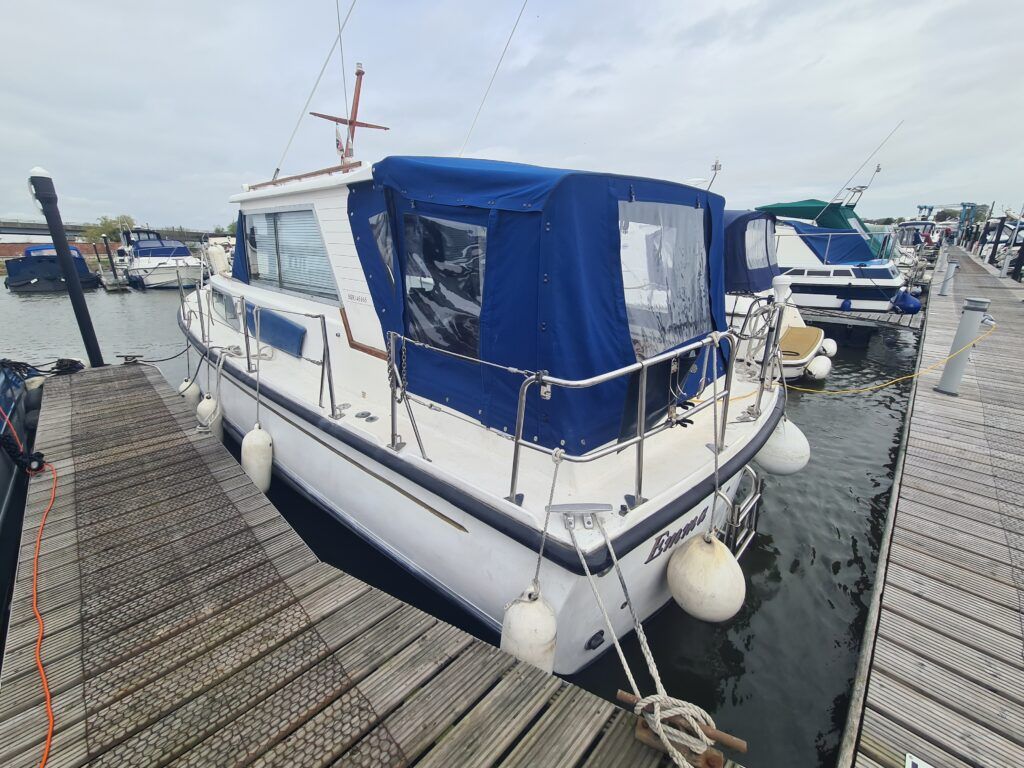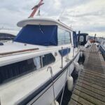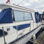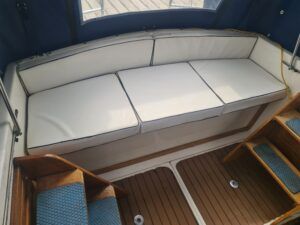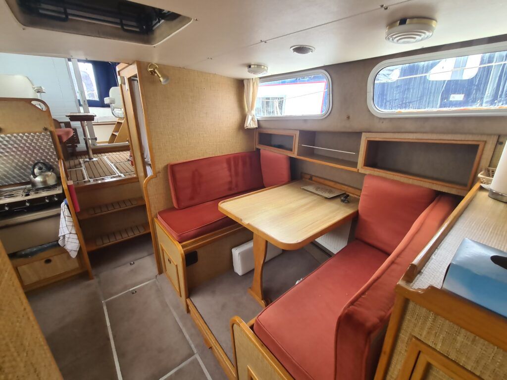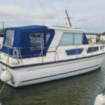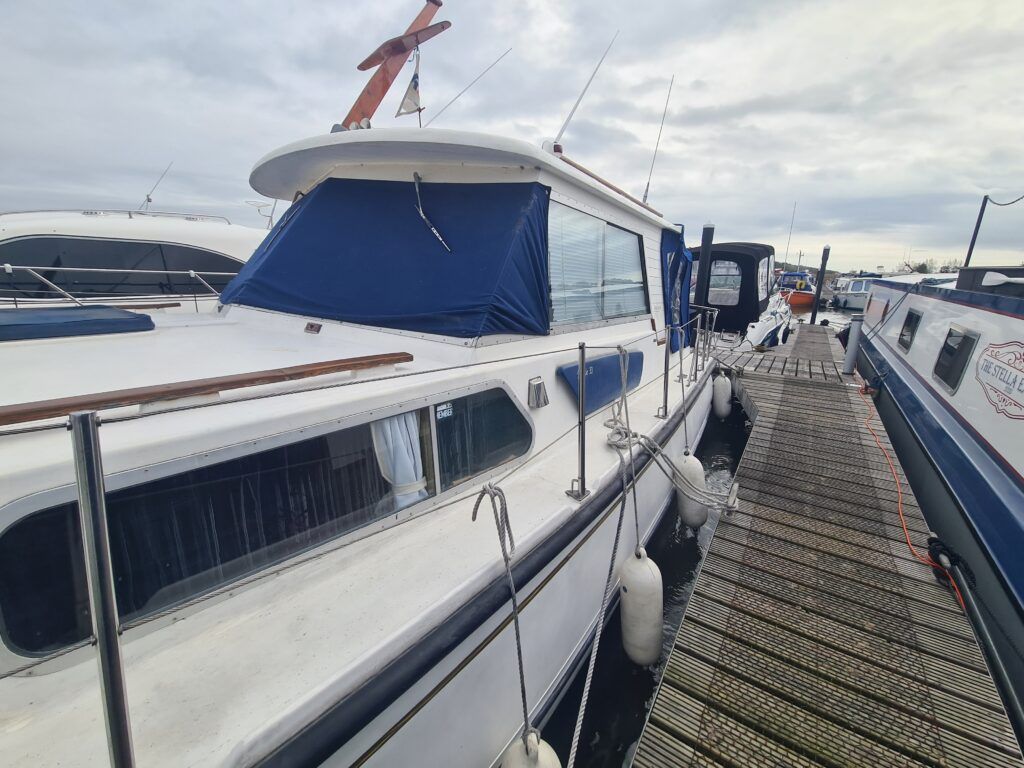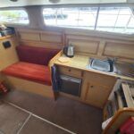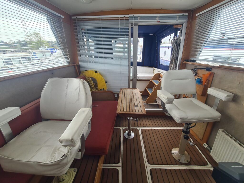 PROFILE 33 – 1988 – twin Volvo MD31A 62 hp diesel engines on shaft, 4+2 berth accommodation, shower , 12v fridge, gas hob oven and grill, shore power, sliding sunroof, radiator diesel heating, holding tank, autopilot, Garmin chart plotter, GPS, copper coat hull, BSC 01-2029, a spacious cruiser that has been cruised in UK and Europe by its current owners.