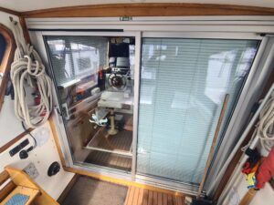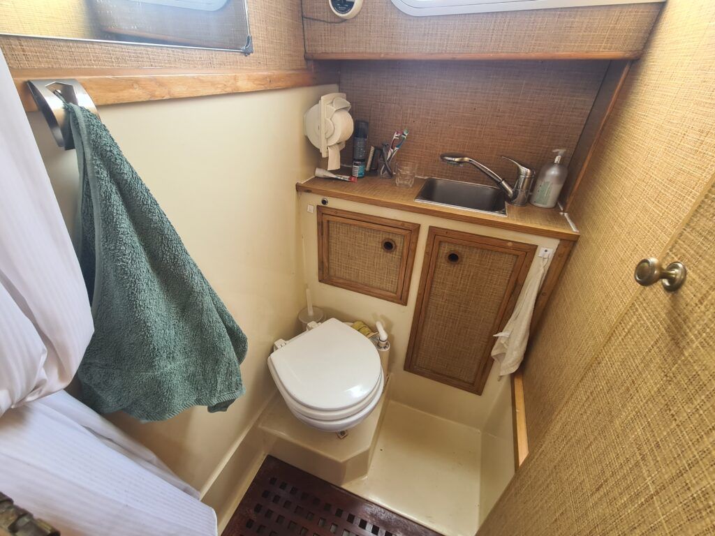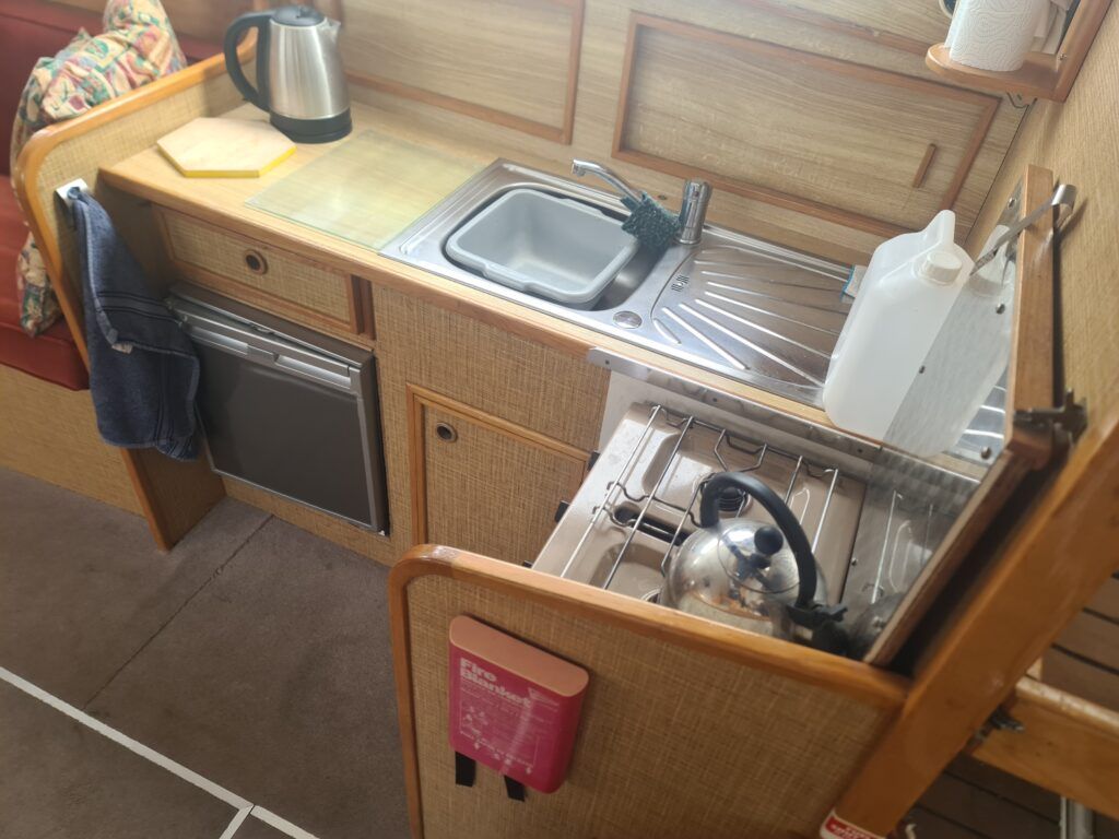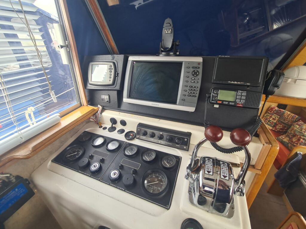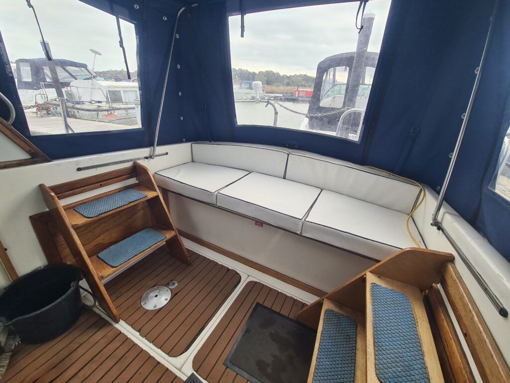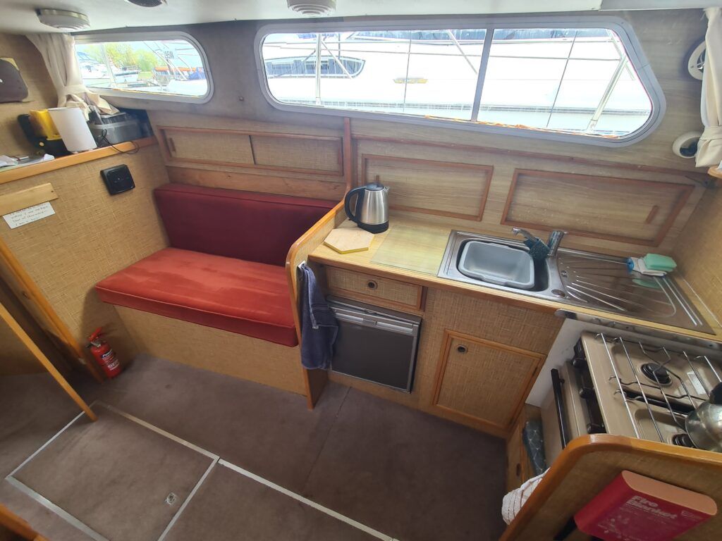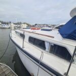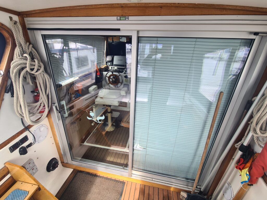 PROFILE 33 – 1988 – twin Volvo MD31A 62 hp diesel engines on shaft, 4+2 berth accommodation, shower , 12v fridge, gas hob oven and grill, shore power, sliding sunroof, radiator diesel heating, holding tank, autopilot, Garmin chart plotter, GPS, copper coat hull, BSC 01-2029, a spacious cruiser that has been cruised in UK and Europe by its current owners.