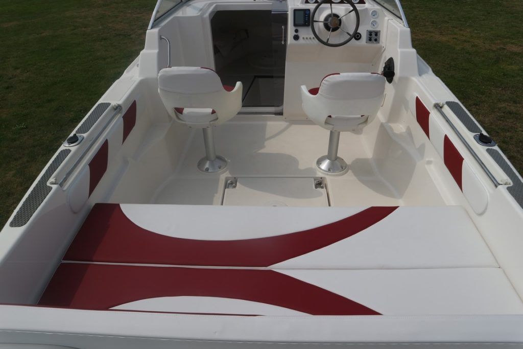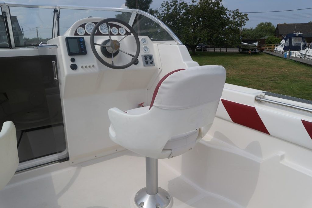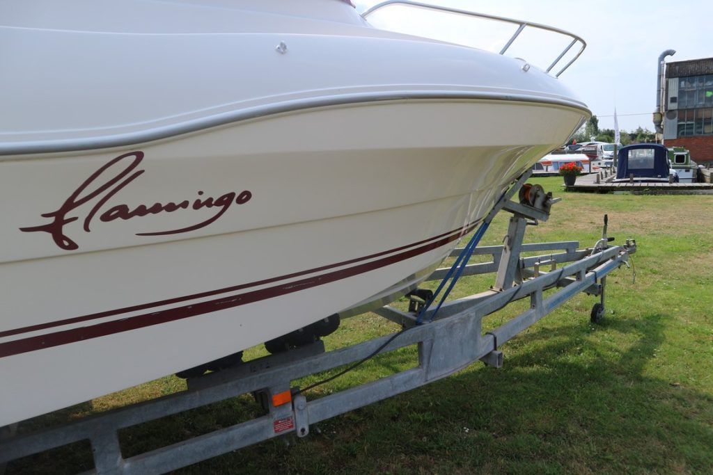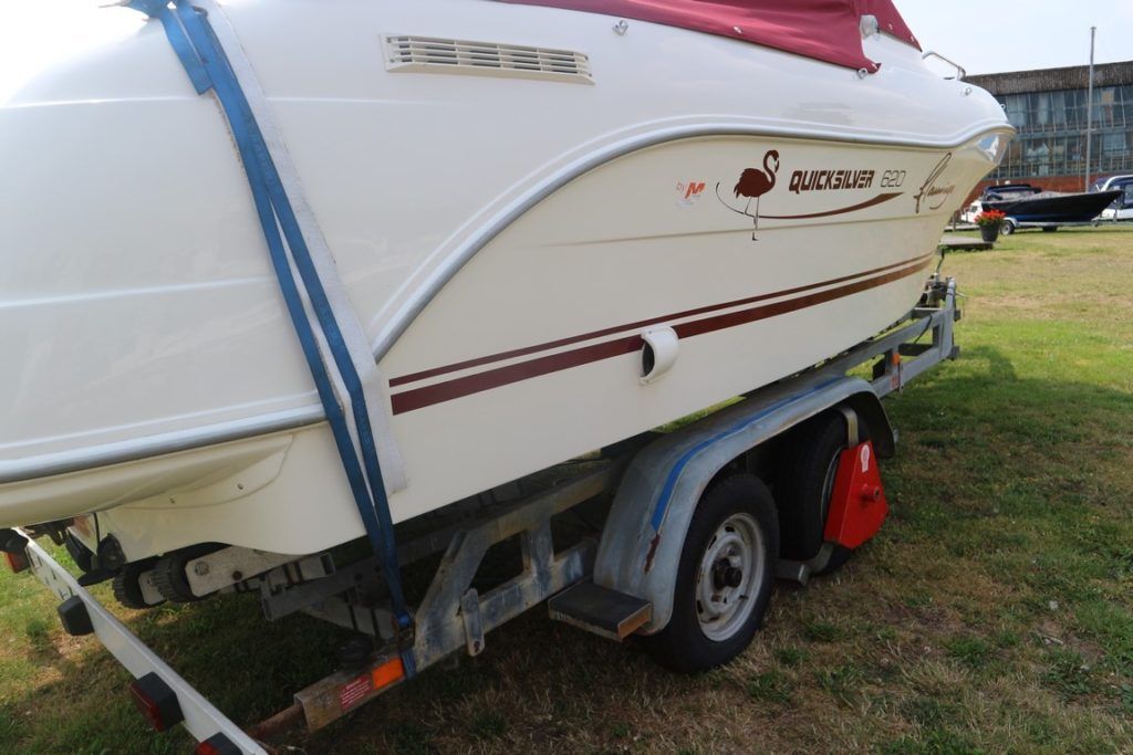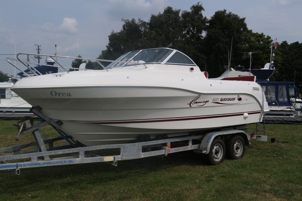 QUICKSILVER 620 FLAMINGO – 2004 – Powered by a single Mercruiser 3.0l 135hp inboard petrol. 2 berth cuddy cabin accommodation. Power steering, Navman Fishfinder 4431, tonneau cover (new 2018), engine instruments and automatic bilge pump. extensive investment in 2018 to include; new cockpit upholstery, engine and sterndrive service and a full trailer service. Presented in immaculate condition, a turn-key package… ready to go and enjoy a summer of boating!