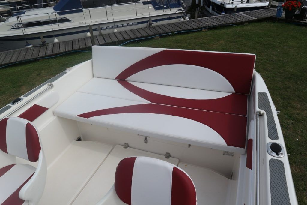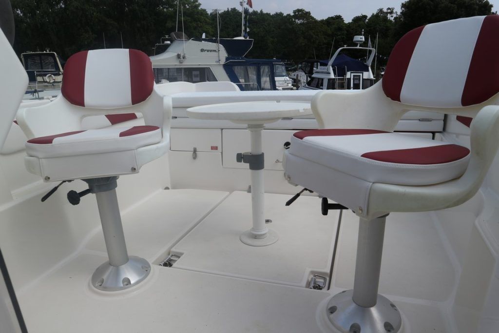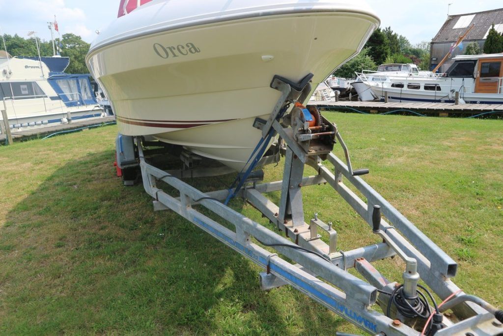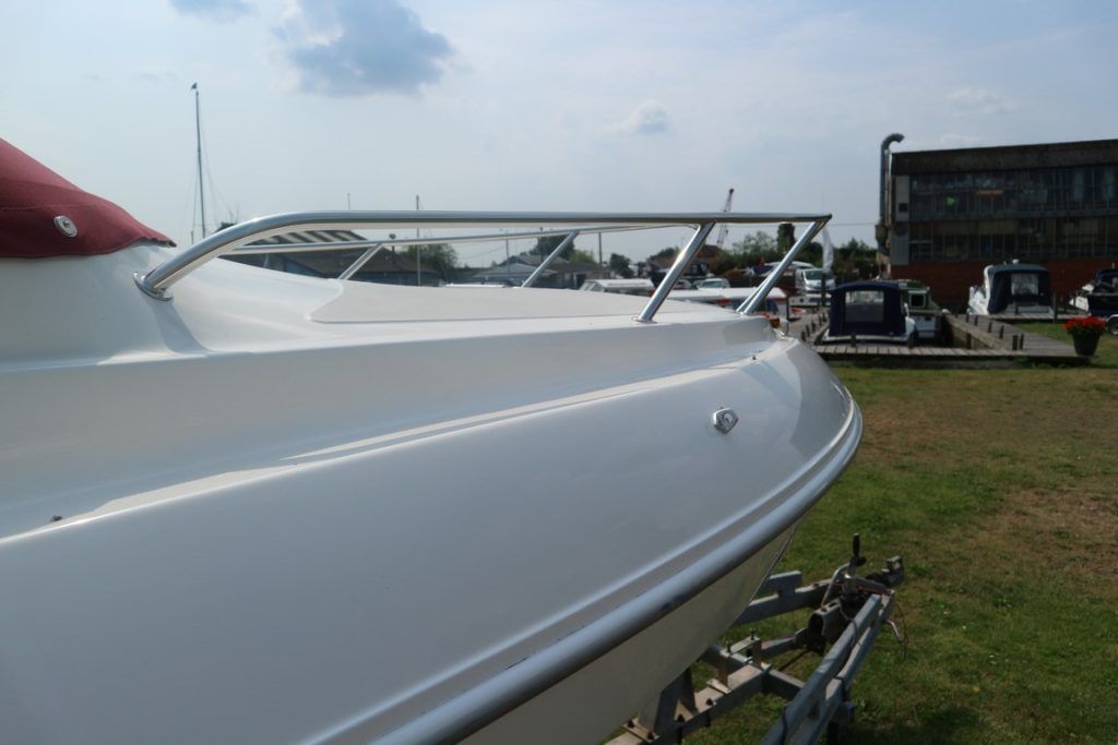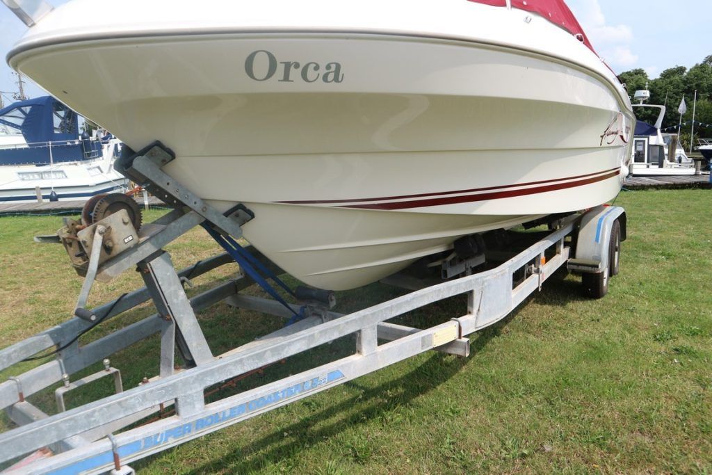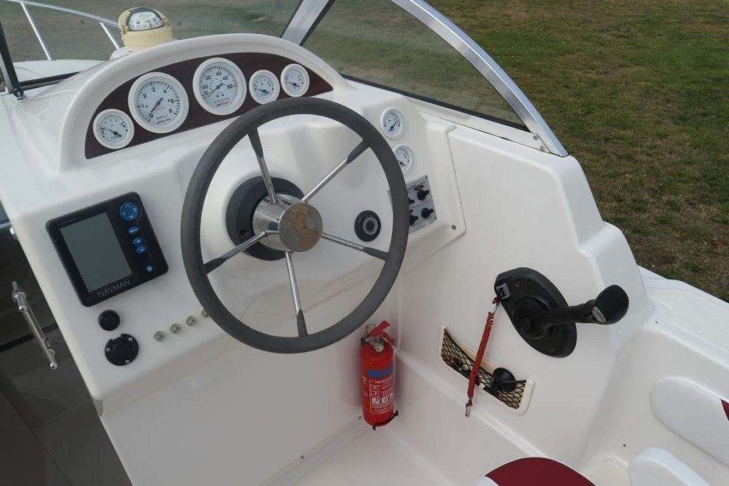 QUICKSILVER 620 FLAMINGO – 2004 – Powered by a single Mercruiser 3.0l 135hp inboard petrol. 2 berth cuddy cabin accommodation. Power steering, Navman Fishfinder 4431, tonneau cover (new 2018), engine instruments and automatic bilge pump. extensive investment in 2018 to include; new cockpit upholstery, engine and sterndrive service and a full trailer service. Presented in immaculate condition, a turn-key package… ready to go and enjoy a summer of boating!
