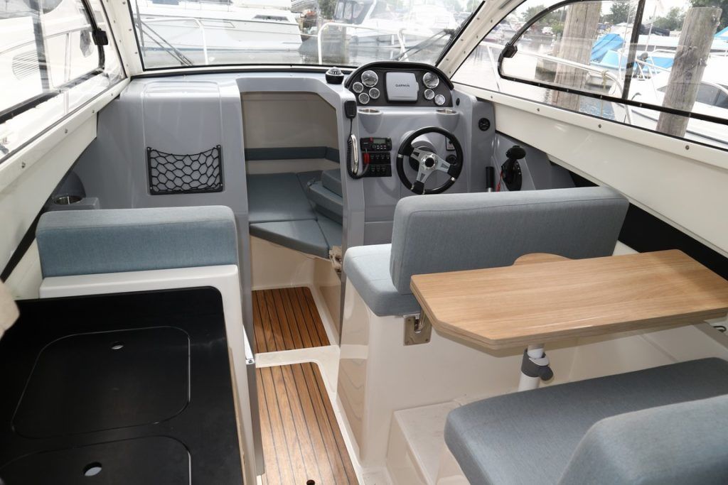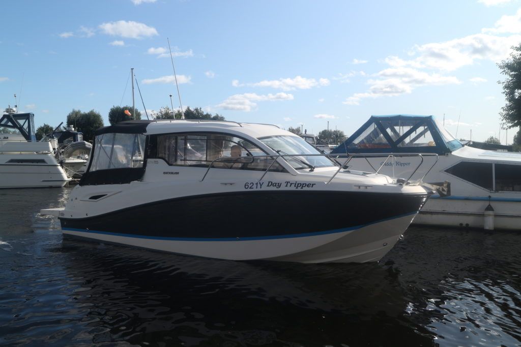 QUICKSILVER 705 – 2013 – Powered by a single Cummins Mercruiser 2.0l inboard diesel. 4 berth accommodation with one toilet. Specification to include; Shore power supply with 240v sockets, electric windlass, Garmin GPSmap 551s, M Tech VHF. BSC 11/21. Machine polish, antifoul and new batteries. A very versatile cruiser with the much sought after inboard diesel! Low air draft for increased inland work coupled with capable offshore performance, very versatile and would make an ideal introduction into boating!