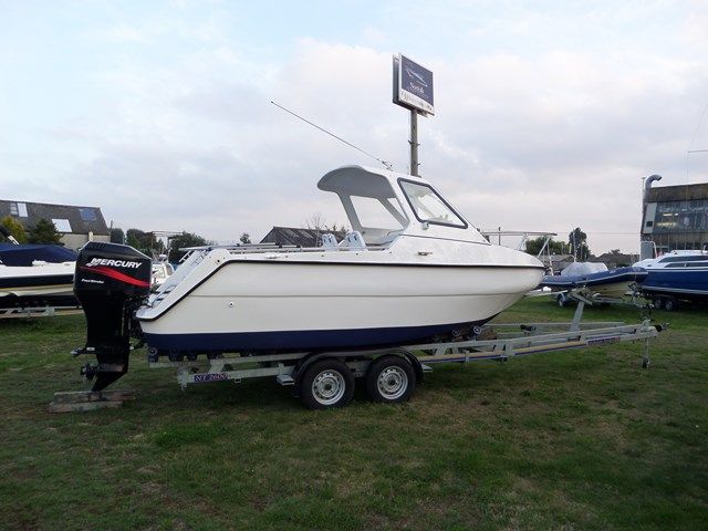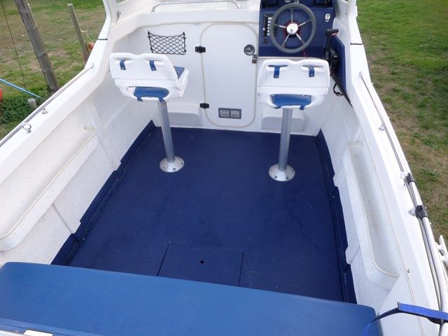 RAIDER 18 FAST FISHER – 2003, Mercury 90hp 4 stroke outboard, just polished and antifouled, Porta Potti, new canopy, Garmin GPS, VHF, Garmin fish finder. Lockable cuddy door – ideal for storage and additional seating. Safe, practical and versatile, the 18 offers 52sq ft of cockpit space – perfect for fishing, diving or just an excuse to get out on the water. Trailer not included within this price.