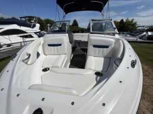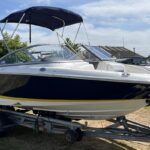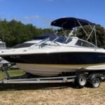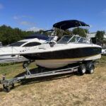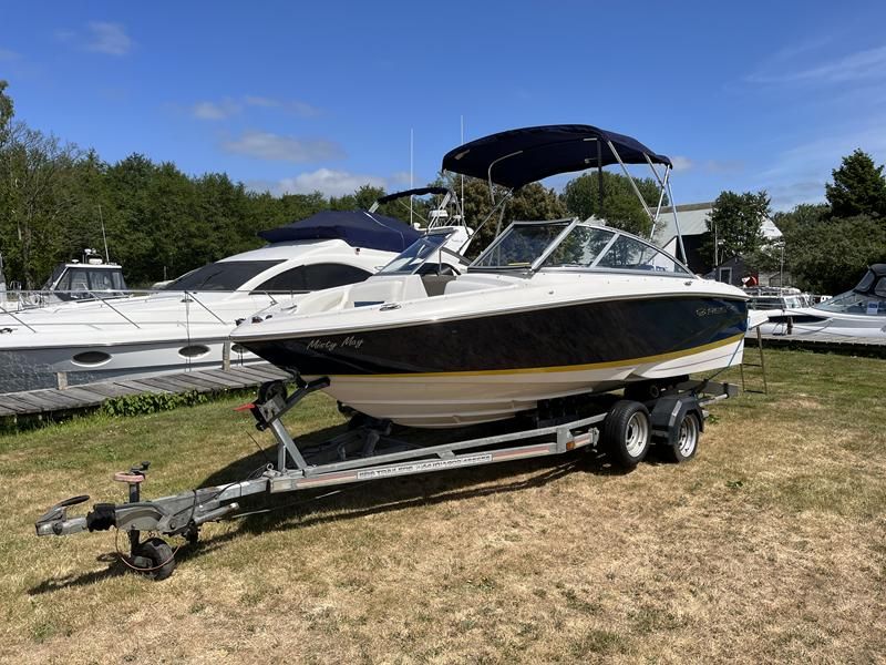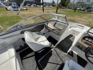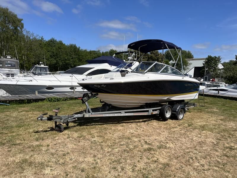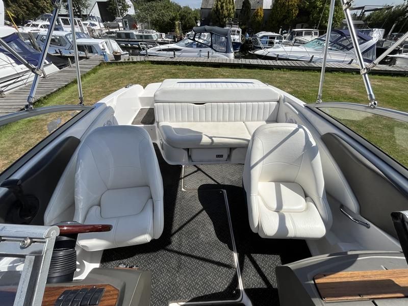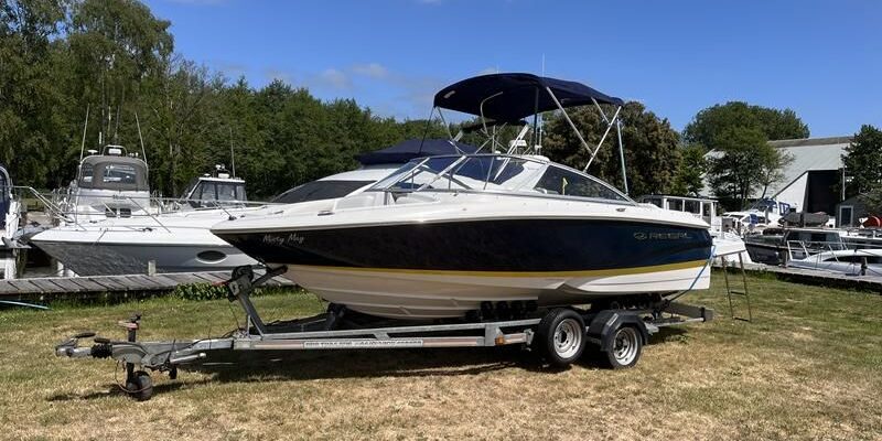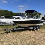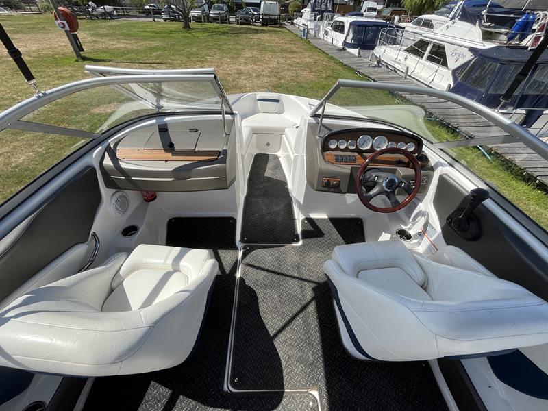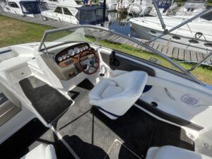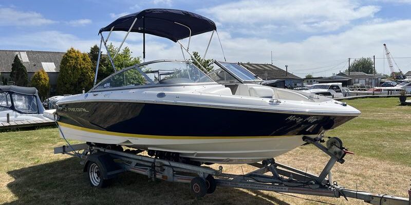 Regal 1900 Bowrider – 2006- Powered by a Mercruiser 3.0 litre 135hp petrol engine with Alpha One stern drive. Features Regal’s efficient FasTrac hull design and seating for 6 with aft bench seat with a large sun pad. Includes SBS 2-wheel roller braked trailer, full windowed cockpit canopy, tonneau cover, Garmin GPSmap 451, 12v sockets, bimini top and more. A well-presented example of the popular Regal 1900 – Ideal for relaxed day trips, watersports, or even a spot of fishing. A complete package for summer!