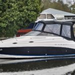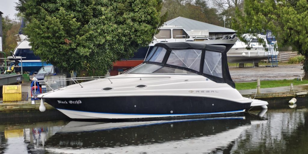 Regal 2665 Commodore – 2004 – Powered by a single Yanmar 240hp diesel engine through a stern drive. 4 berth accommodation with 1 x toilet and shower. Specification including shore power supply with battery charger, immersion heater, electric windlass, trim tabs, holding tank, a range of navigation equipment. Striking black hull and canopy with an extended bathing platform. A sought after diesel engine sports cruiser with a desirable low air-draft.