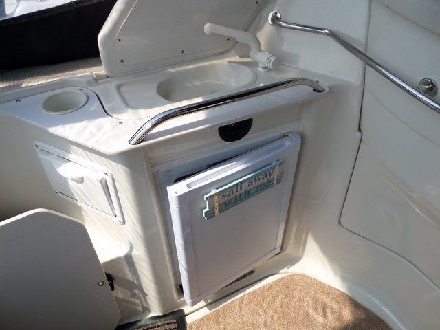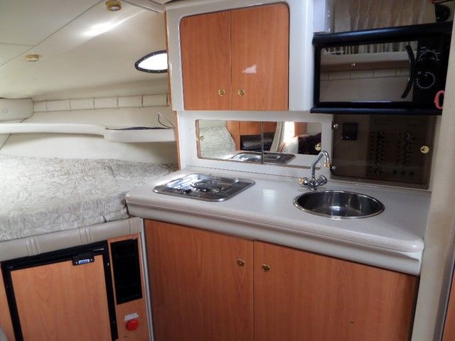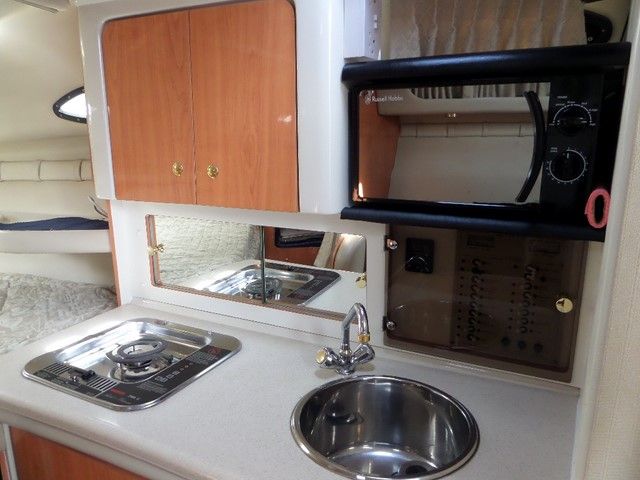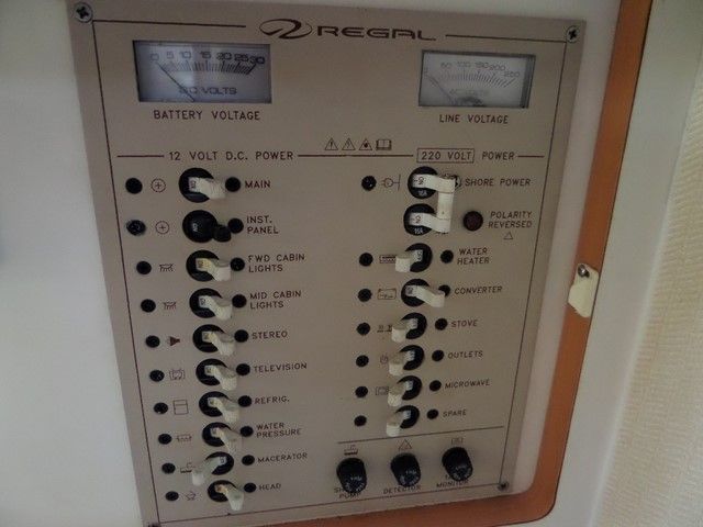 REGAL 2760 COMMODORE – 2000, twin Mercruiser 4.3 EFI (220hp) Petrol Engines. 6 berths in two cabins, single burner stove, microwave, 2 x fridges, Eberspacher heating, 2 x VHF radios, Navman GPS, compass, bow thruster, shore power, battery charger.