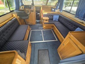 Renaissance 31 Sedan – 2000 – Powered by a Nanni 4.220HE 50hp diesel engine through a shaft. 5 berth accommodation with a toilet and shower compartment. Specification to include; bow-thruster, electric windlass, inverter, battery charger, immersion heater, solar panel, warm air heating and more. BSC May 2029. A well-maintained and comfortable sedan-style inland cruiser, boasting a comprehensive specification and perfectly suited for extended stays on the inland waterways.