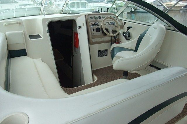 RINKER FIESTA VEE 266 – 1997 – Single Mercruiser 5.7LX V8 petrol engine. 4 berths in 2 cabins with toilet to holding tank, shower. Single hob, fridge, shore power, very sociable cockpit area for entertaining. Low airdraft making it suitable for inland and coastal use. Will be Supplied with new Boat Safety Certificate