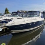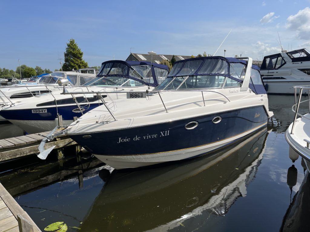 RINKER FIESTA VEE 270 – 2003 – Powered by a single Yanmar 4LHA-SAT2P 230hp diesel engine. 4 berth accommodation with a mid-cabin and a toilet and shower compartment. Specification to include; New Titan canopy 2022, pump out toilet, Bennett trim tabs (2022), shore power, battery charger, Autoterm diesel heating system, Raymarine Element 7 HV (2022), electric windlass, extended bathing platform and many extras! BSC 2025, antifouled and polished April 2023. Broads Toll paid 2023 / 2024. An eye-catching sports cruiser with a sought-after diesel engine and spacious cockpit – perfect for entertaining friends and family