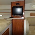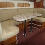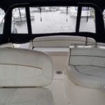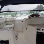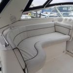 RINKER FIESTA VEE 342 – 2002 – Twin Yanmar 4LPHA STZP 240hp diesel engines. 6 berths in 2 cabins with 1 toilet and shower. Bow thruster, Webasto heating, Immersion hot water heater, inverter, battery charger. Sleek sports cruiser style with superb accommodation. Full interior refit 2014.