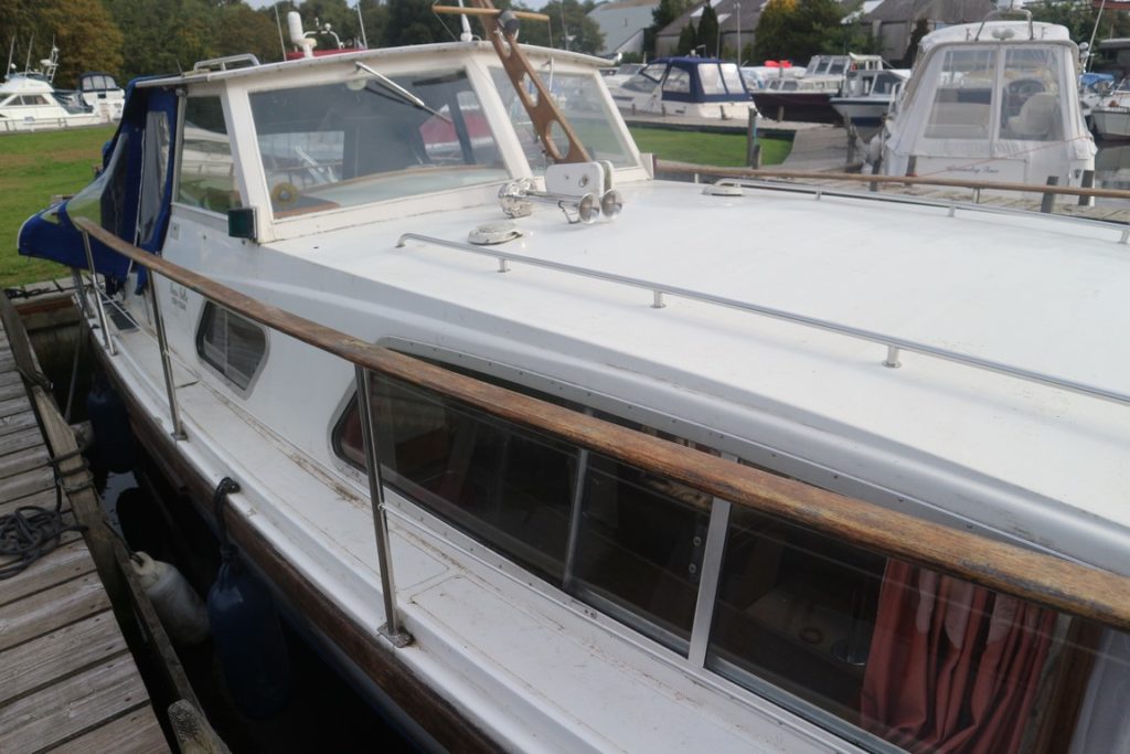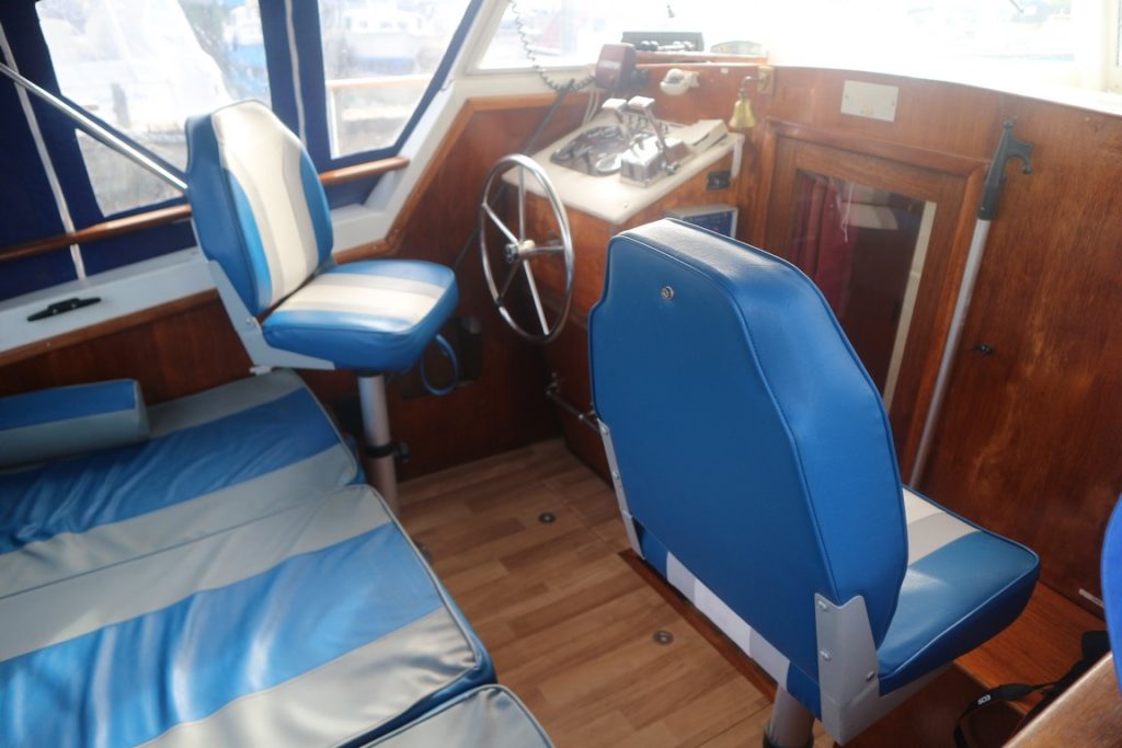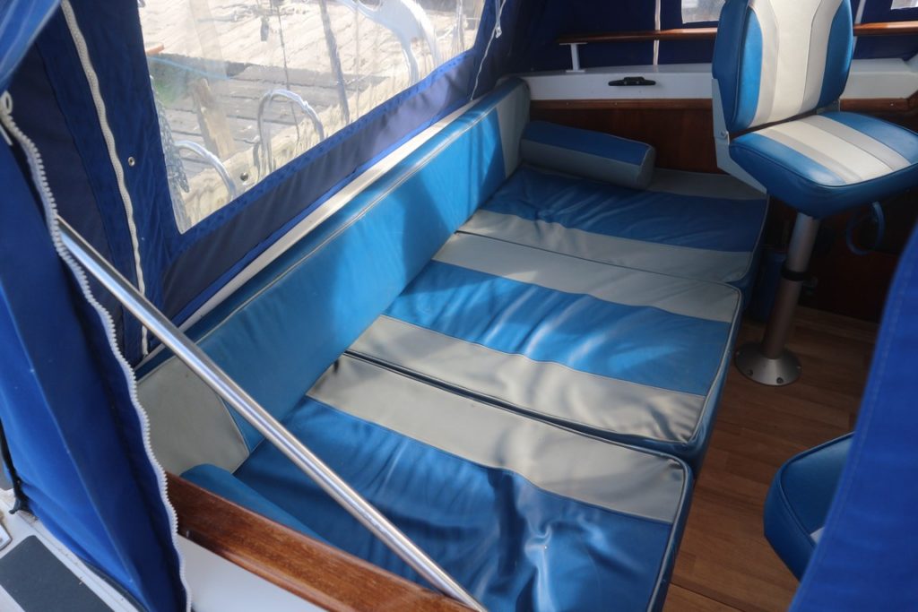RLM SEYCHELLS 27 – Circa. 1975 – Powered by twin BMC 1500 diesels. 4 berth accommodation (potential for extra 2 berths in the cockpit), one toilet and one shower. Specification includes; holding tank, calorifier, full galley facility and shore power supply with battery charger. Antifouled 2018, engine service 2017 and outdrives overhauled 2017 including new propellers. Well kept mechanically by current owners, a surprisingly spacious and economical motor cruiser.