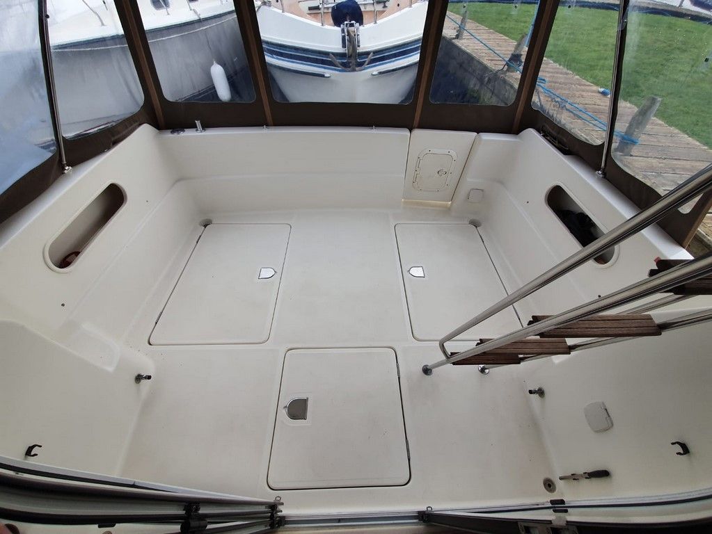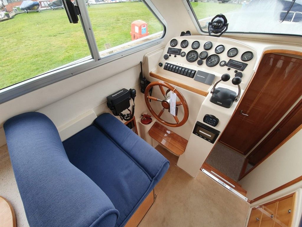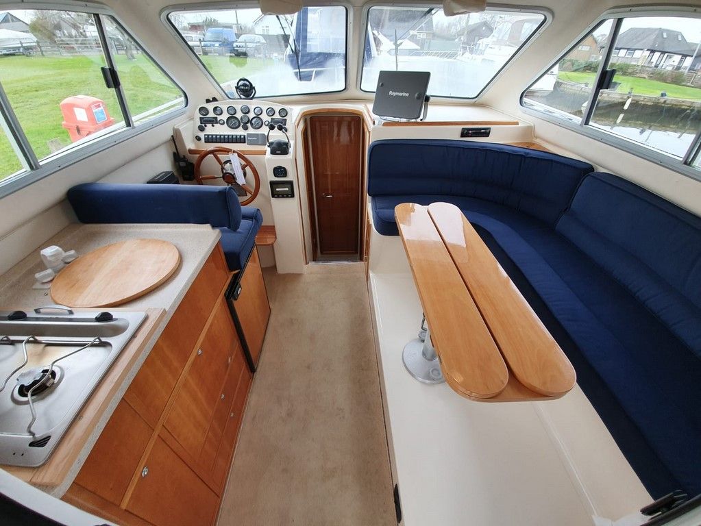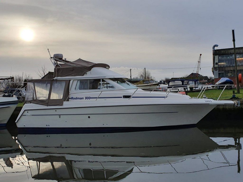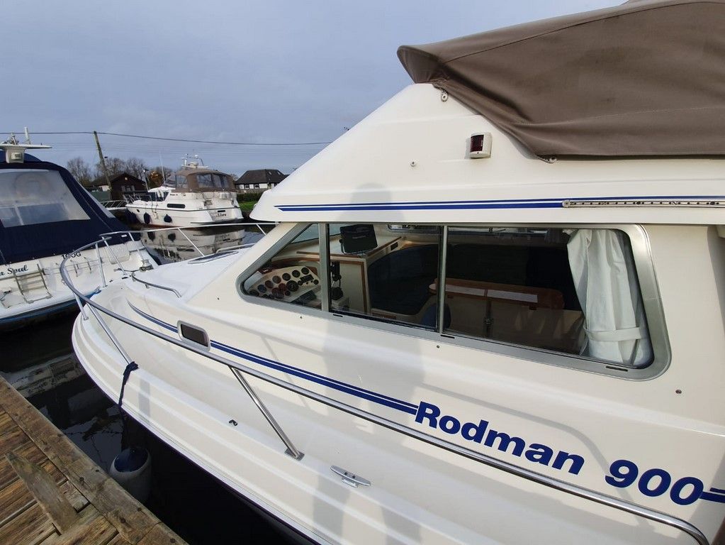RODMAN 900 – 2003 – Powered by twin Volvo KAMD300 285hp diesel. 4 berth accommodation with toilet and shower. Specification to include; Eberspacher warm air heating, electric windlass, shore power with charger and 240v sockets, Raymarine C120 plotter and VHF, 2 burner hob and refrigerator. Very well presented, NYA Stock benefiting from a full machine polish and antifoul. Clever use of space to maximise accommodation, sought after island double bed and shaft drive configuration!