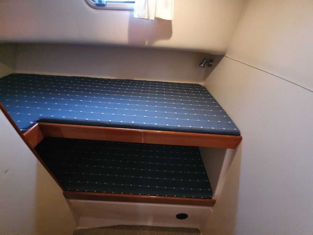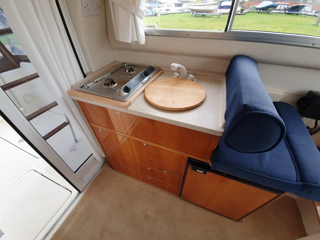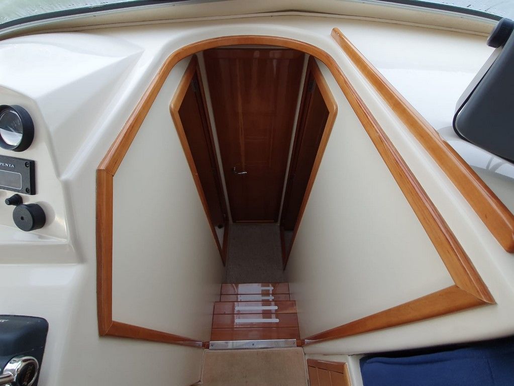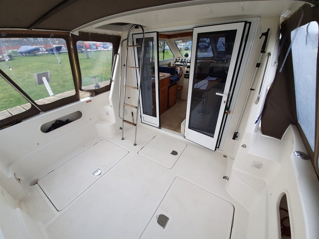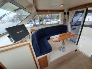 RODMAN 900 – 2003 – Powered by twin Volvo KAMD300 285hp diesel. 4 berth accommodation with toilet and shower. Specification to include; Eberspacher warm air heating, electric windlass, shore power with charger and 240v sockets, Raymarine C120 plotter and VHF, 2 burner hob and refrigerator. Very well presented, NYA Stock benefiting from a full machine polish and antifoul. Clever use of space to maximise accommodation, sought after island double bed and shaft drive configuration!