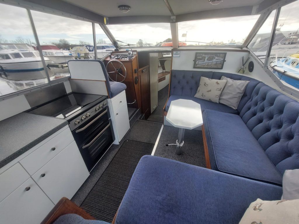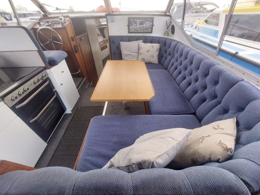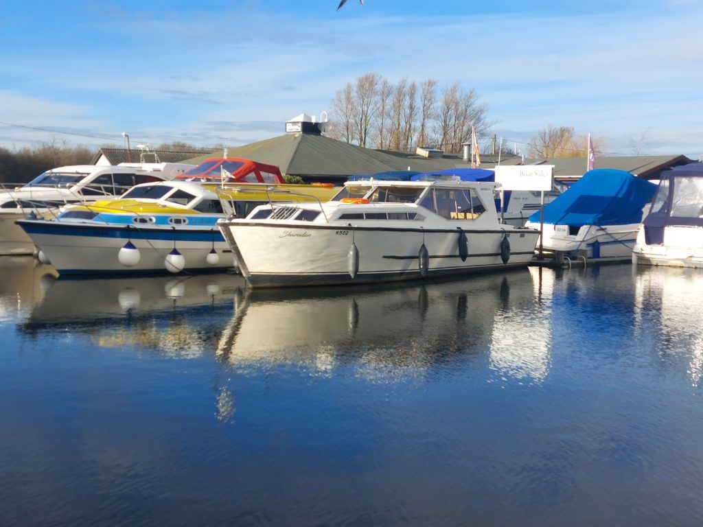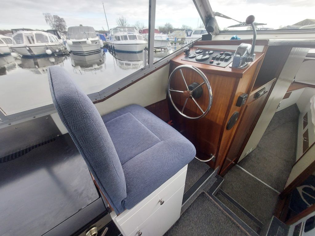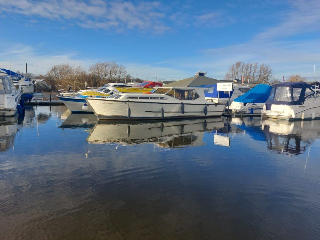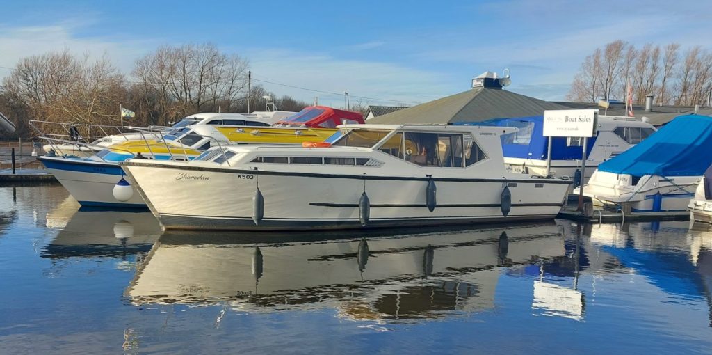 Sancerre 33 – 1982 – Single BMC Thorneycroft 50hp diesel engine through an hydraulic drive. 4 berth accommodation with a single toilet & shower compartment. Specification to include; warm air heating, solar power, newly fitted galley, shore power, holding tank. “Sharodan” benefits from having had a recent make over and is a very clean and well presented craft. Recently stored in a wet shed, she would make an excellent boat on which to explore the Norfolk Broads. BSC 15/08/26.