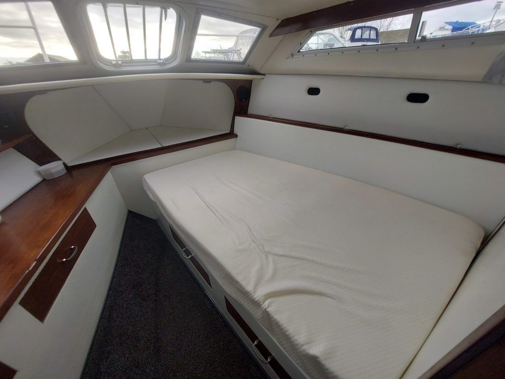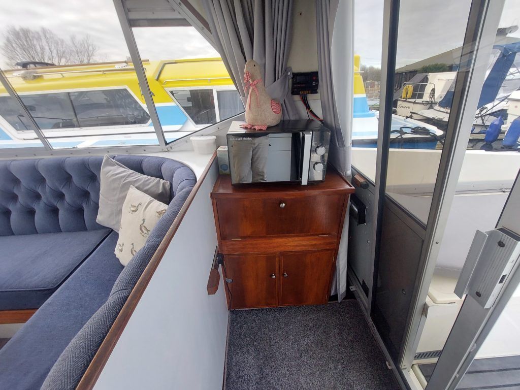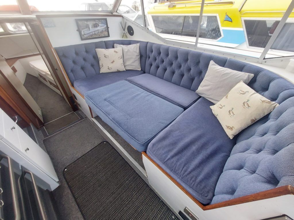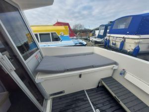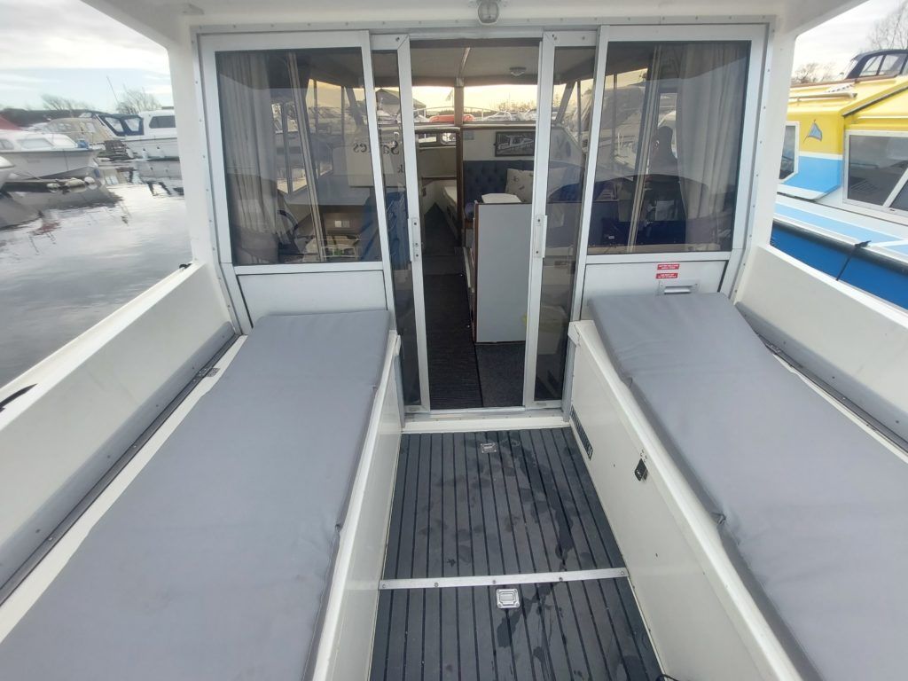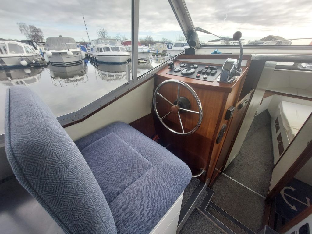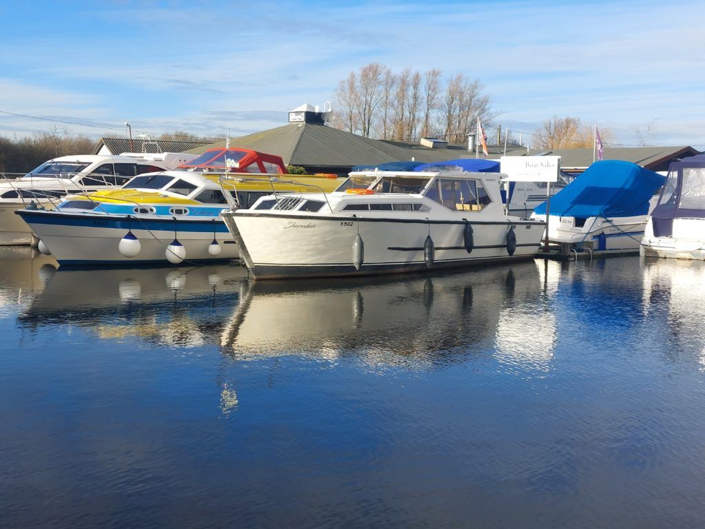 Sancerre 33 – 1982 – Single BMC Thorneycroft 50hp diesel engine through an hydraulic drive. 4 berth accommodation with a single toilet & shower compartment. Specification to include; warm air heating, solar power, newly fitted galley, shore power, holding tank. “Sharodan” benefits from having had a recent make over and is a very clean and well presented craft. Recently stored in a wet shed, she would make an excellent boat on which to explore the Norfolk Broads. BSC 15/08/26.