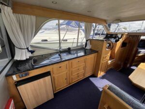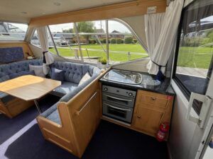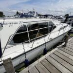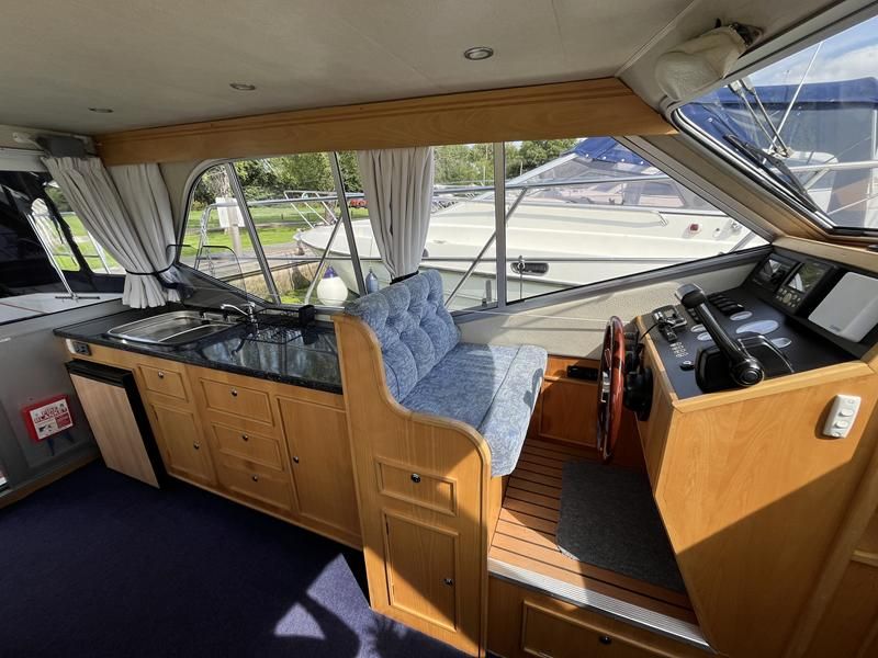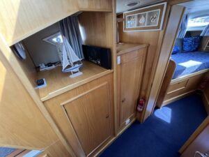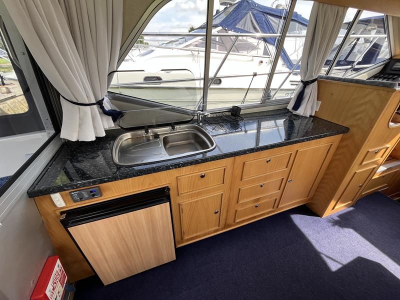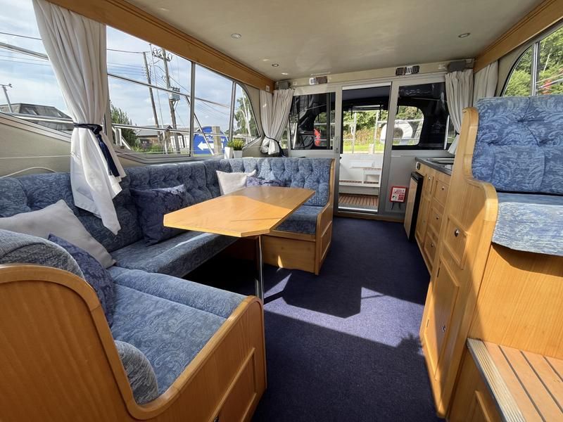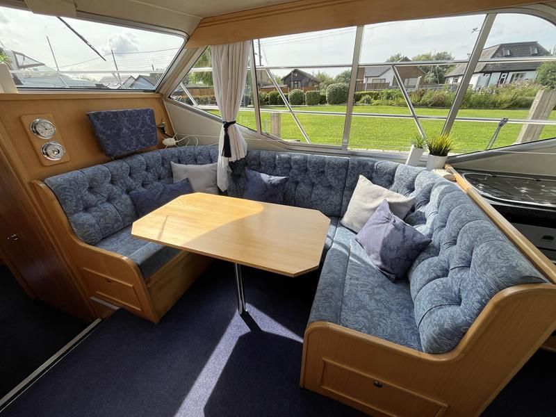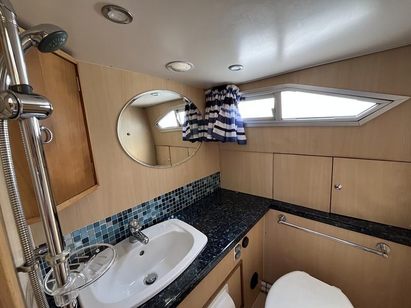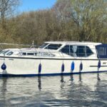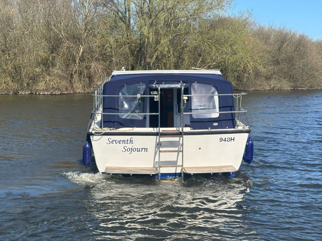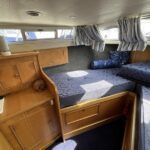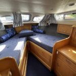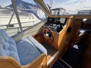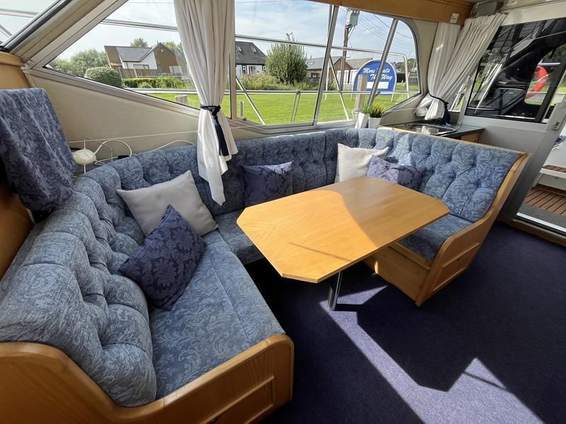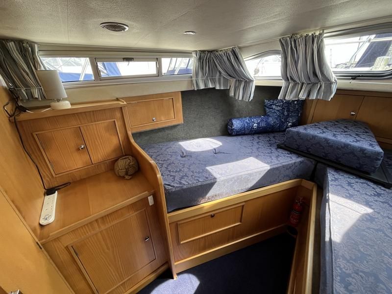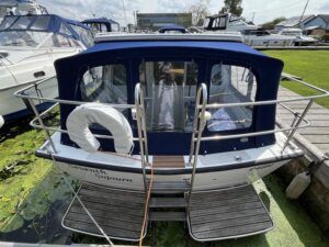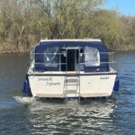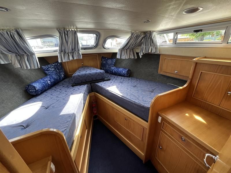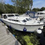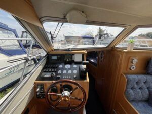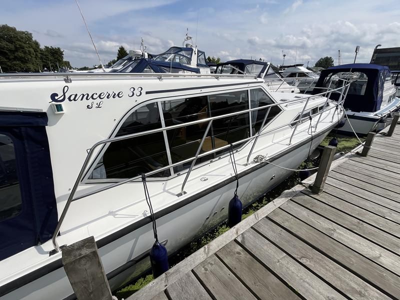Sancerre 33 – 2006 – Single Nanni 5.250 5 cylinder 85hp diesel engine through a shaft. 4 berth accommodation across master cabin & saloon with a single toilet & shower compartment. Specification to include; bow and stern thrusters, warm air heating/cooling, inverter, battery charger, VHF radio, chart plotter, autopilot. “Seventh Sojourn” is a very highly specified and beautifully kept example of these spacious river cruisers. With a low air-draft, she would be perfect for exploring the inland waterways. NYA Stock – sold with an NYA 3 month engine and gearbox warranty. Viewing highly recommended.