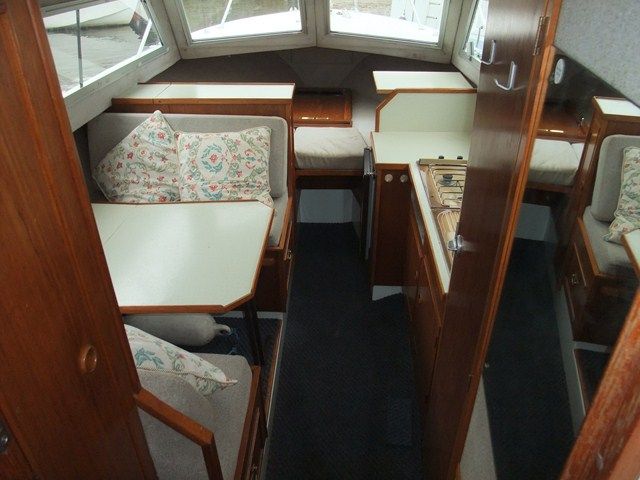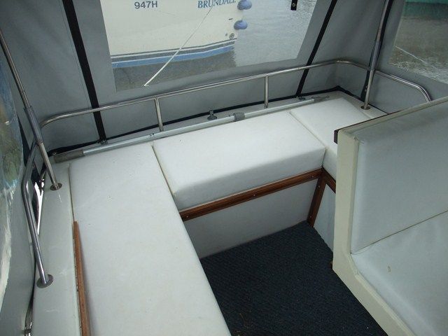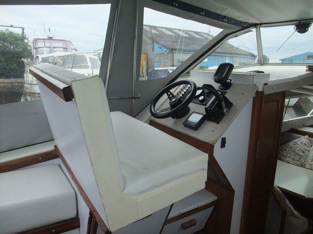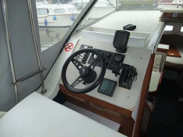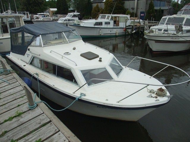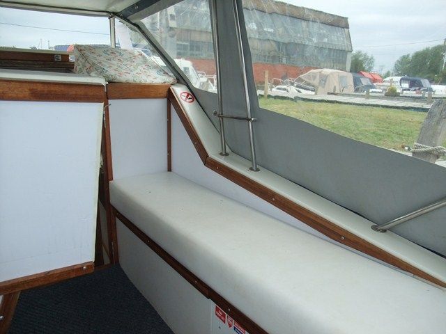 SEA AIRED 23 GRP RIVER CRUISER – Built in 1987 and powered by a Volvo 28HP diesel. 4 berth, chemical toilet, shower, two burner with grill, fridge, hot water, folding windscreens and arch. A tidy river boat, with a low air draft, perfect for the inland waterways.