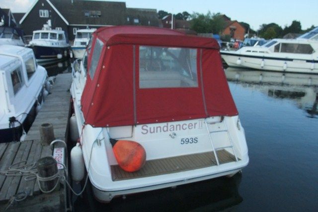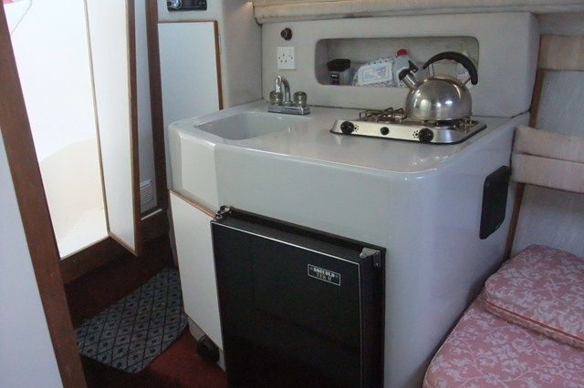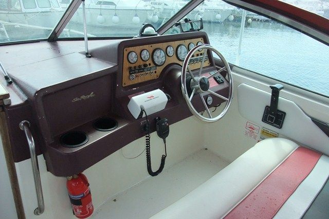SEA RAY 220 DA – Built 1992 with a Mercruiser petrol engine. 4 berths, toilet, galley. Shore power, battery charger, VHF. New engine fitted 2008, stern drive overhauled 2010, antifouled and polished engine and outdrive serviced 2012. BSC expires 2016.