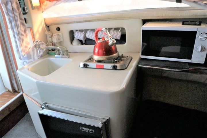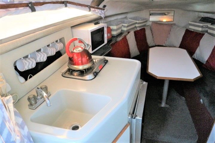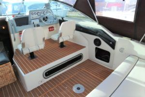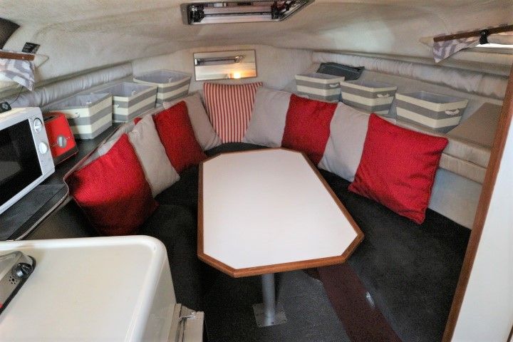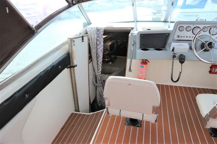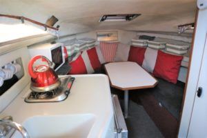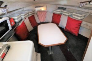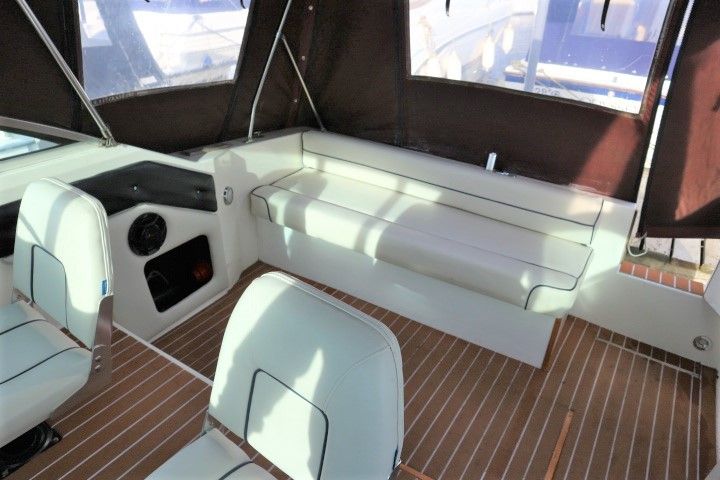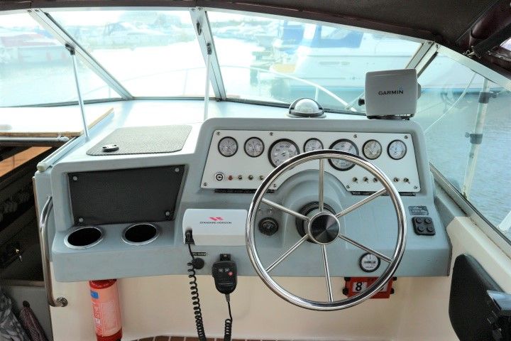 SEA RAY 220DA – 1992 – 1 x Mercruiser 5.7 V8 Petrol engine. 4 berth accommodation in one cabin and 1 x electric toilet to holding tank. Spec including Battery charger, inverter, shore power, warm air heating, VHF, Garmin 450 GPS, BSC 05/20. A sports cruiser providing a good specification and spacious sociable cockpit.
