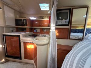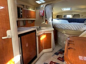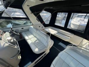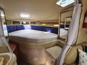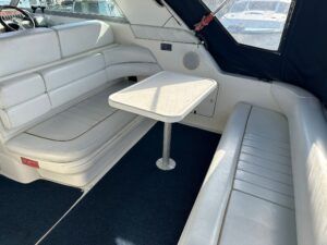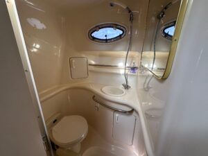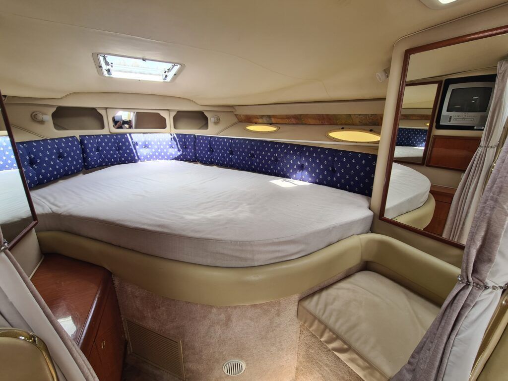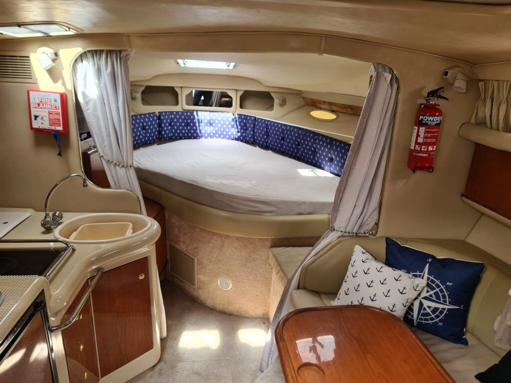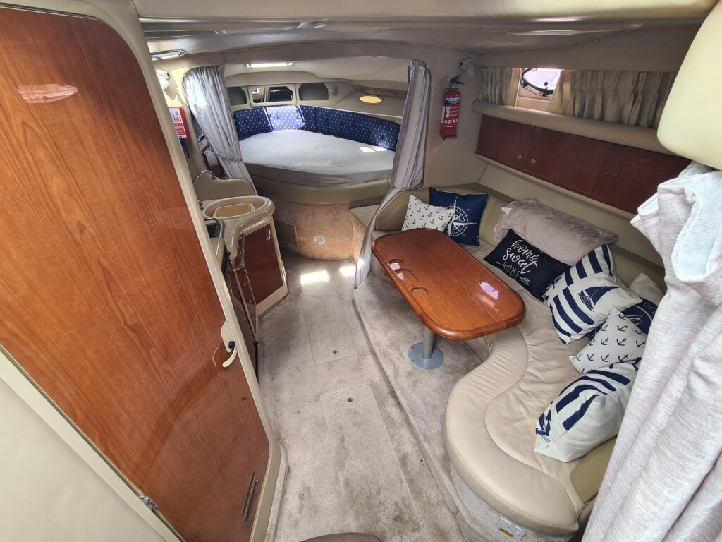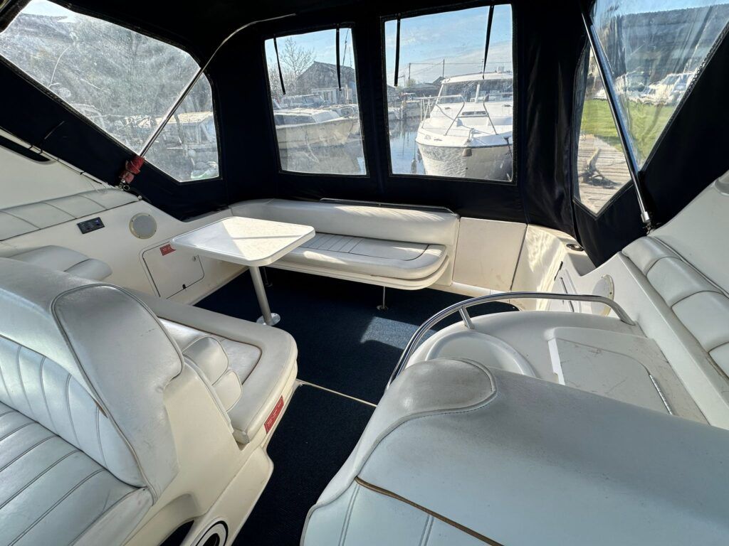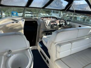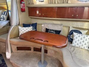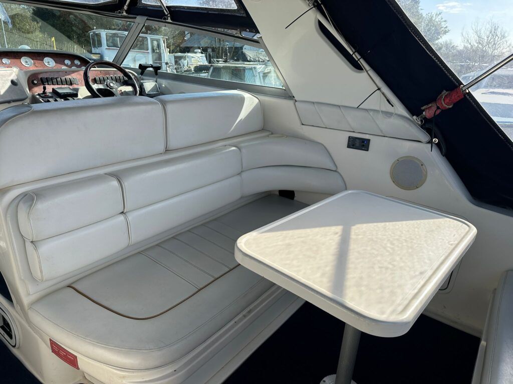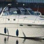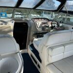 Sea Ray 330 Sundancer – 1998 – Powered by 2 x Nanni 4.390 TDI 200hp diesel engines with easy access – 6 berth accommodation with a toilet to holding tank and shower. Specification to include; bow thruster, power steering, battery charger, trim tabs, Eberspacher warm air heating, Raymarine C70 and more. Folding arch for increased inland access. A spacious and versatile sports cruiser suited to coastal or inland use.