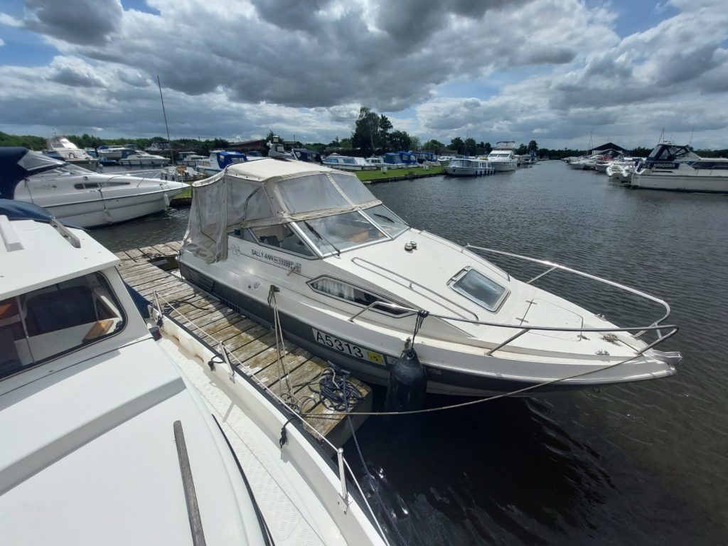 Sealine 195 – 1988 – Powered by a single Volvo AQ151A 135hp petrol engine through a sterndrive. 2 berth accommodation with 1 toilet. Specification to include; Shore power, navigation lights, Hummingbird GPS, trim tabs, JVC radio/CD player, folding radar arch, compass. An ideal starter boat with a low airdraft that allows access under most Broads bridges. BSC 29/06/2025