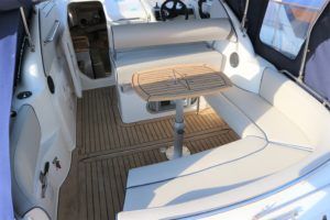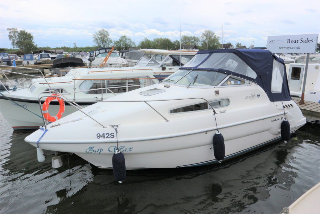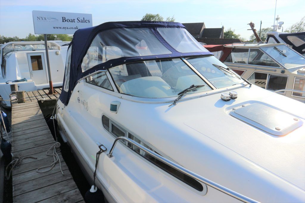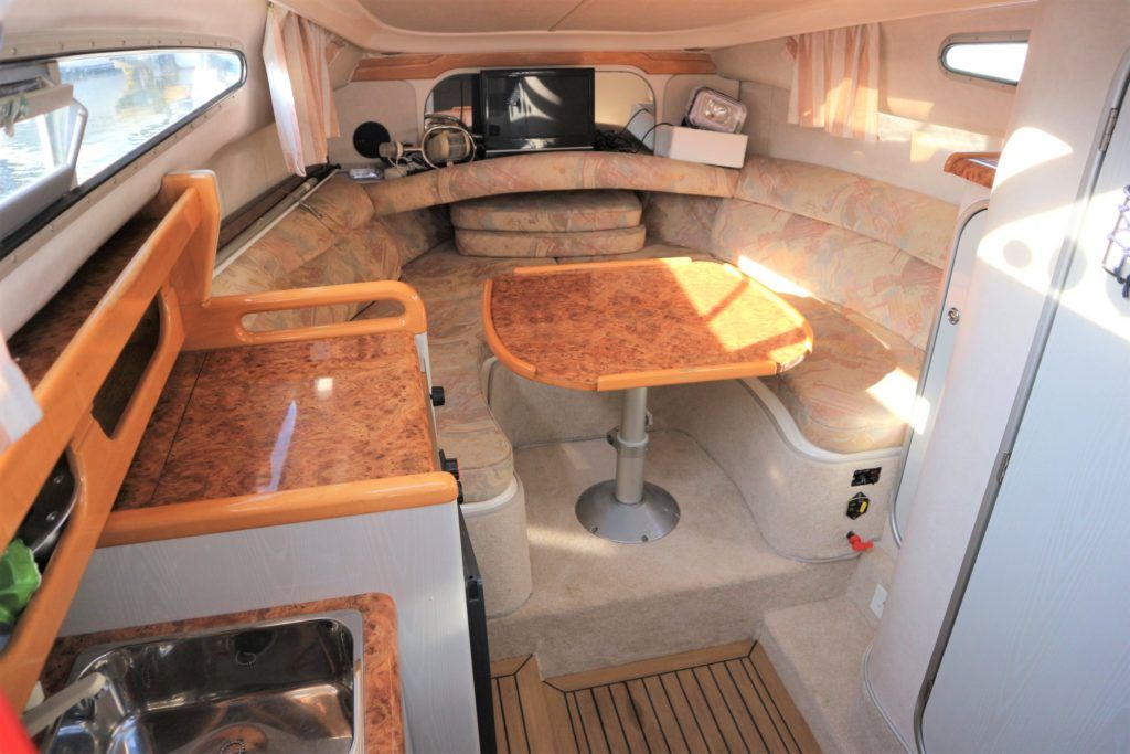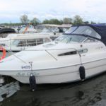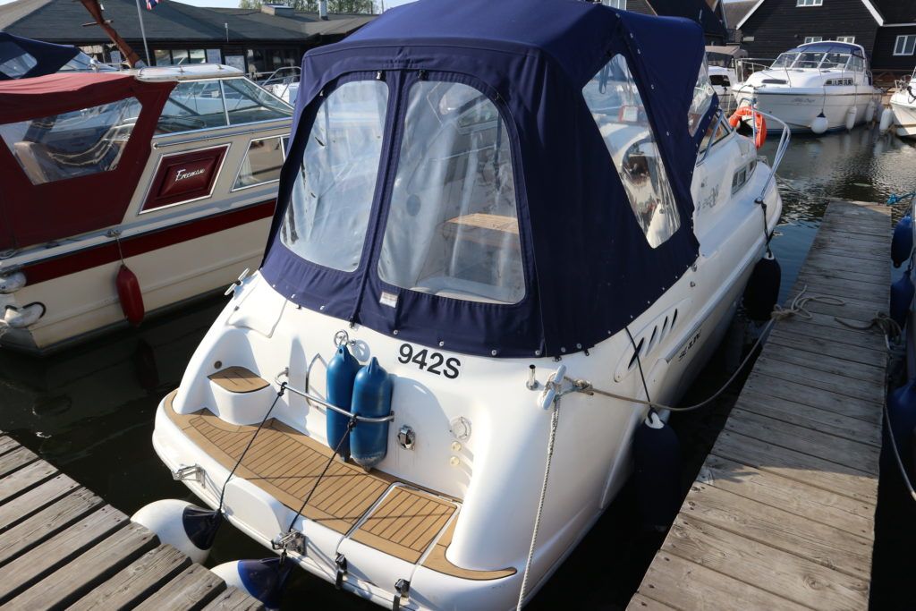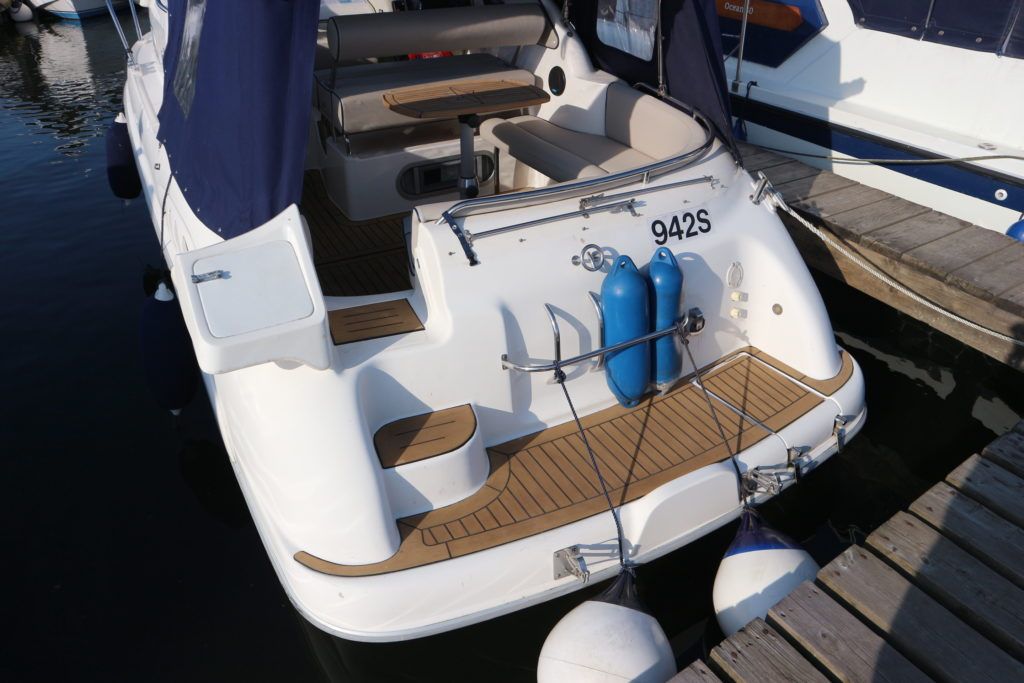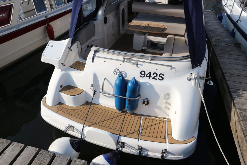 SEALINE 240 SENATOR – 1996 – Mercruiser 4.3LX (205hp) petrol engine. 4 berth accomodation with 1 x toilet/shower compartment. Galley with 2 burner gas hob and grill, fridge & sink. Specification including bow thruster, electric windlass, shore power, battery charger, immersion heater, speed & depth log, GPS, trim tabs, VHF, synthetic teak decking to bathing platform & cockpit,new canopy & cockpit upholstery 2019. A well presented and much improved Sealine 240 offering a good introduction to offshore or inland cruising.