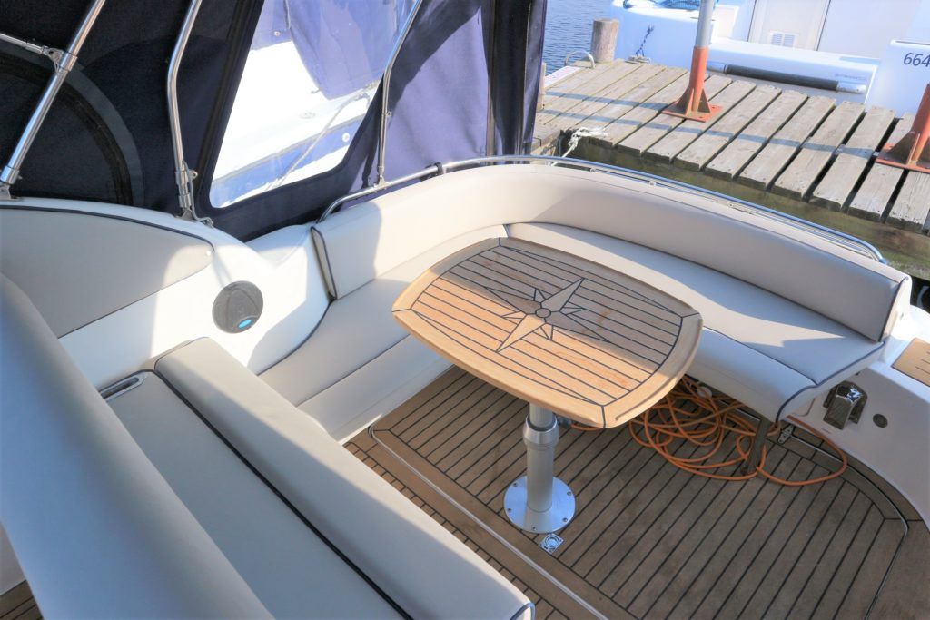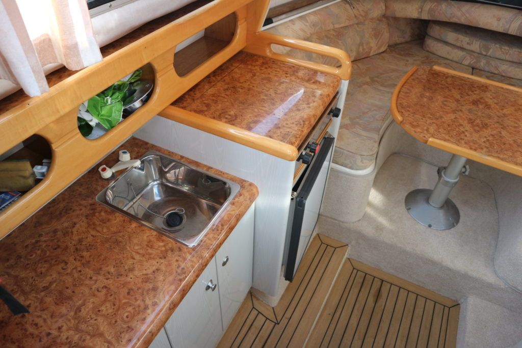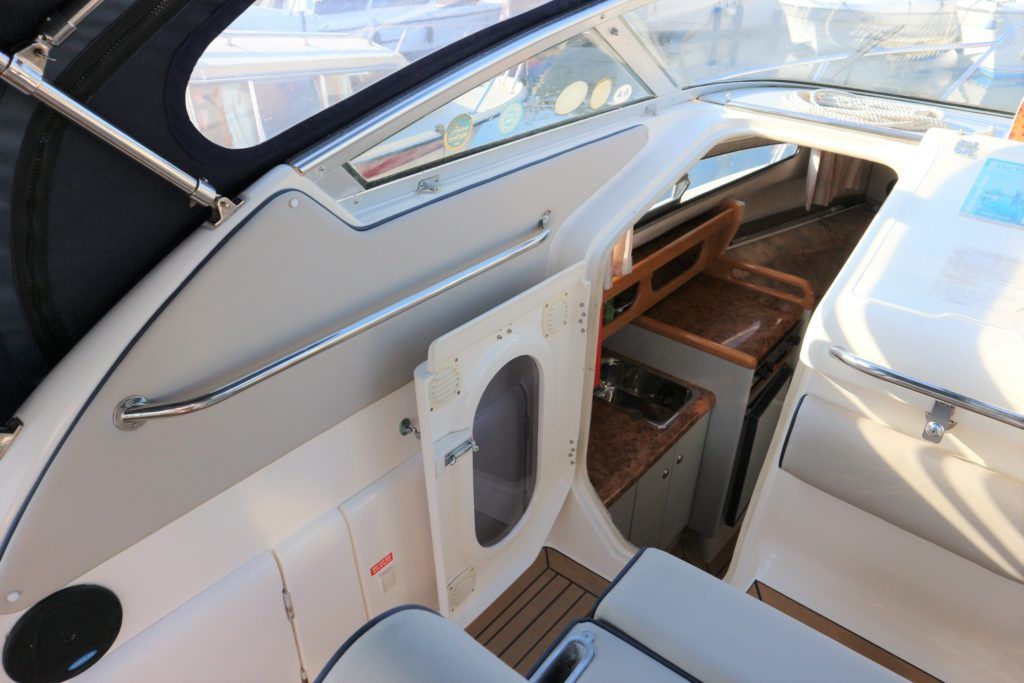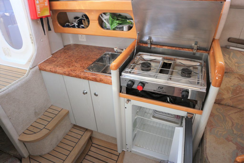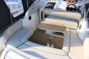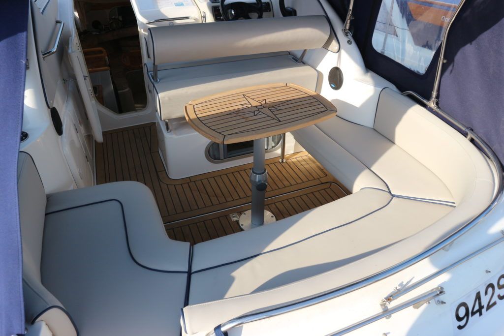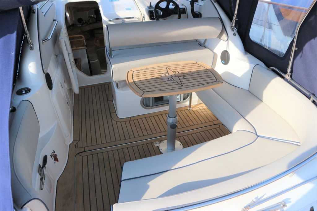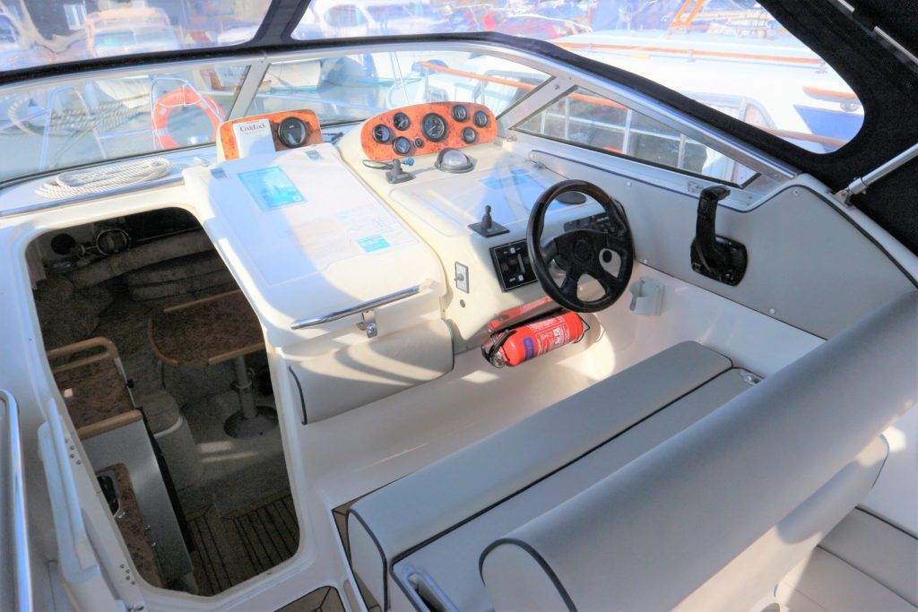 SEALINE 240 SENATOR – 1996 – Mercruiser 4.3LX (205hp) petrol engine. 4 berth accomodation with 1 x toilet/shower compartment. Galley with 2 burner gas hob and grill, fridge & sink. Specification including bow thruster, electric windlass, shore power, battery charger, immersion heater, speed & depth log, GPS, trim tabs, VHF, synthetic teak decking to bathing platform & cockpit,new canopy & cockpit upholstery 2019. A well presented and much improved Sealine 240 offering a good introduction to offshore or inland cruising.