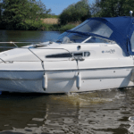 Sealine 240 Senator – 1995- Powered by a single Volvo AD31P 150hp diesel engine to a sterndrive. Specification to include; 4 berth accommodation, Plastimo gas hob and grill, Engel fridge, trimTabs, removable mast, Sony radio/cd player with remote, Lofras anchor winch, speed and depth l0gs, navigation lights. This Sealine 240 Senator is a well presented boat offering a great introduction to offshore or inland cruising.