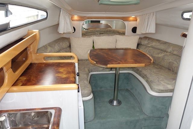 SEALINE 240 SENATOR – 1994 – Single Volvo 225Hp Petrol Engine. 4 berths with 1 toilet to holding tank and 1 shower. Trim tabs, Shore power, Power steering. A well cared for example with ample accommodation and a social cockpit making for an excellent family cruiser.