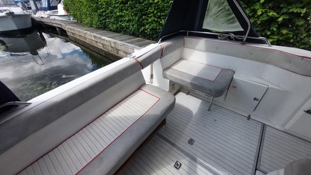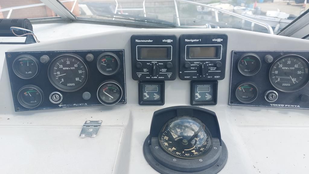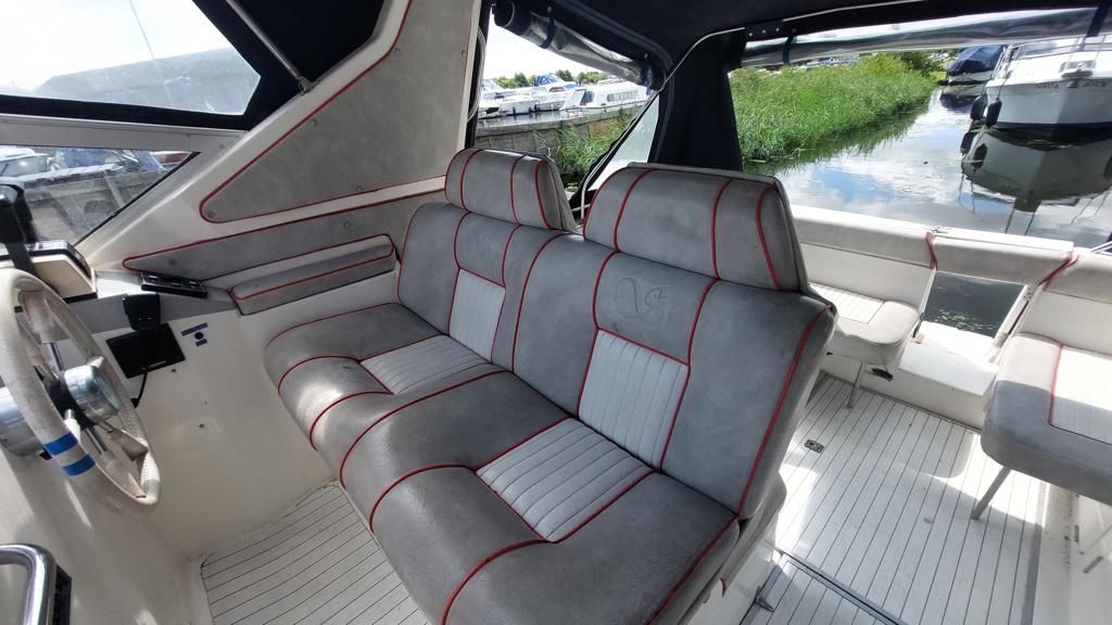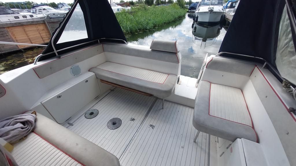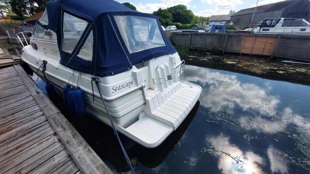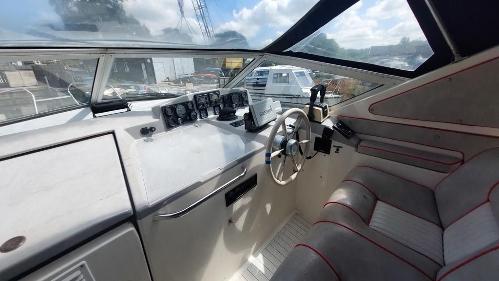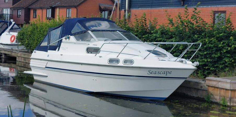 Sealine 255 – 1990 – Twin Volvo Penta AQ250 146hp petrol engines through sterndrives. 4 berth accommodation with a single toilet and shower compartment. Specification to include; Chart plotter, VHF radio, trim tabs, speed and depth logs, shore power, holding tank. “Seascape” offers a large, sociable cockpit with good cabin accommodation. A great starter boat capable of estuary cruising as well as being at home on the inland waterways.