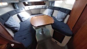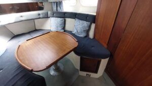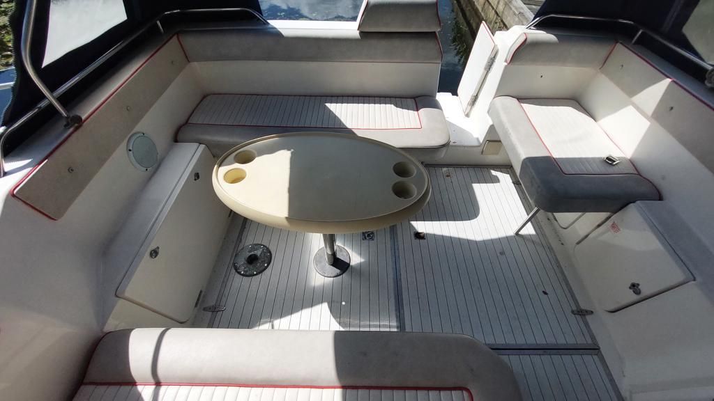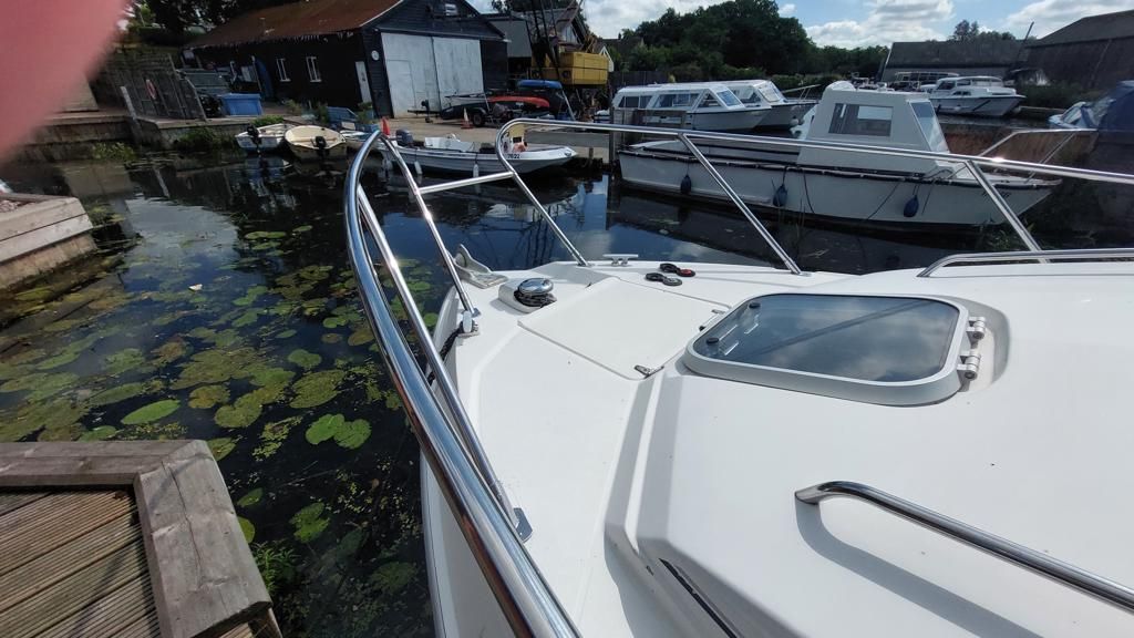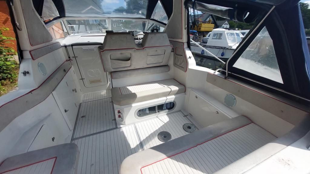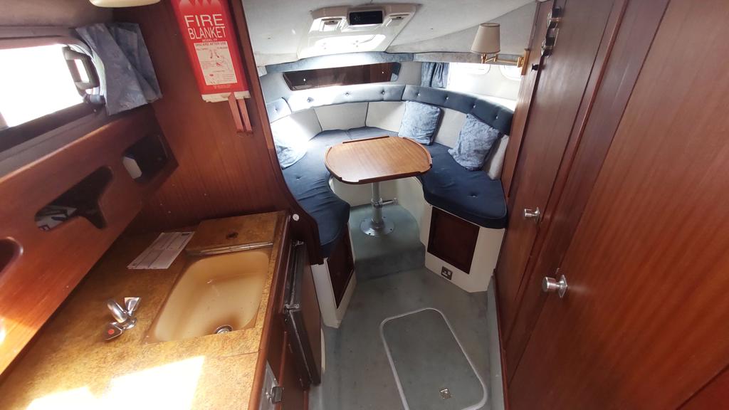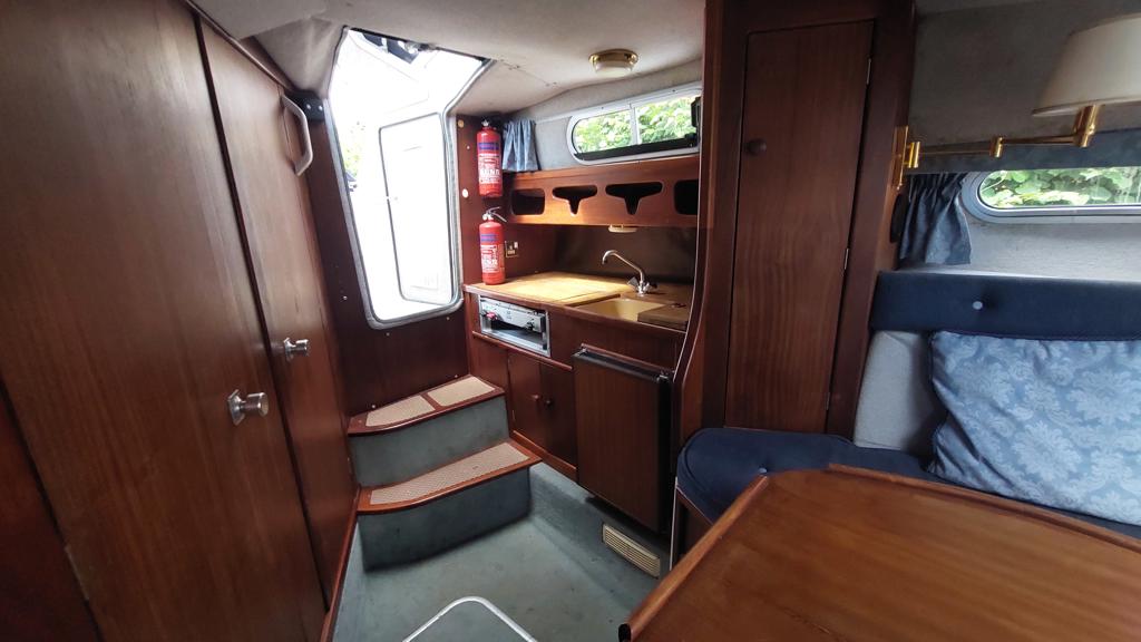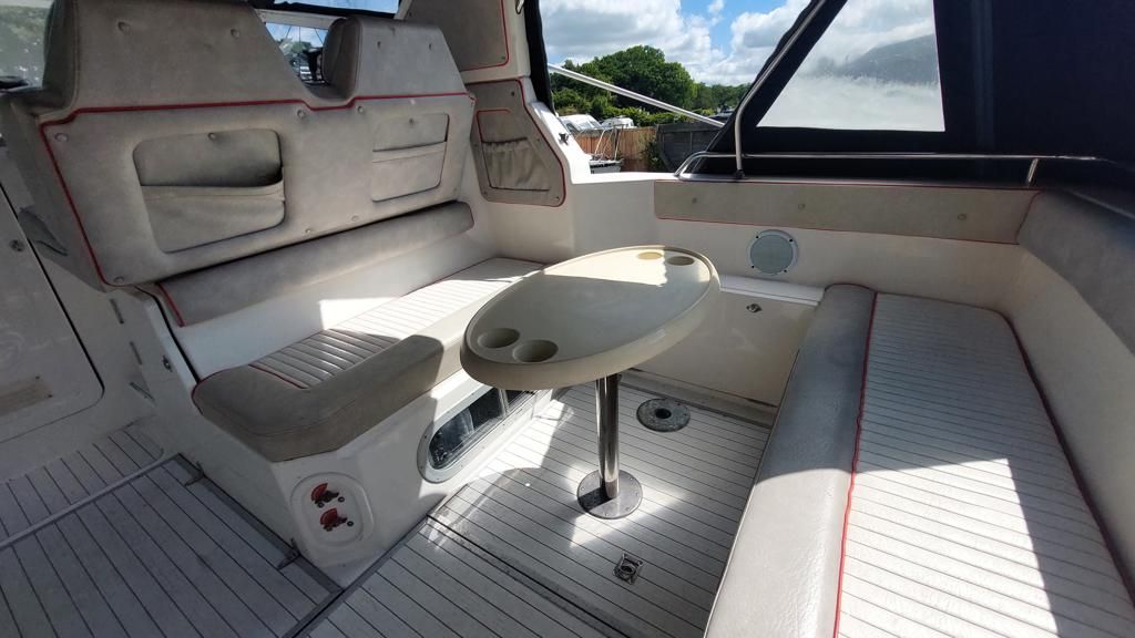 Sealine 255 – 1990 – Twin Volvo Penta AQ250 146hp petrol engines through sterndrives. 4 berth accommodation with a single toilet and shower compartment. Specification to include; Chart plotter, VHF radio, trim tabs, speed and depth logs, shore power, holding tank. “Seascape” offers a large, sociable cockpit with good cabin accommodation. A great starter boat capable of estuary cruising as well as being at home on the inland waterways.