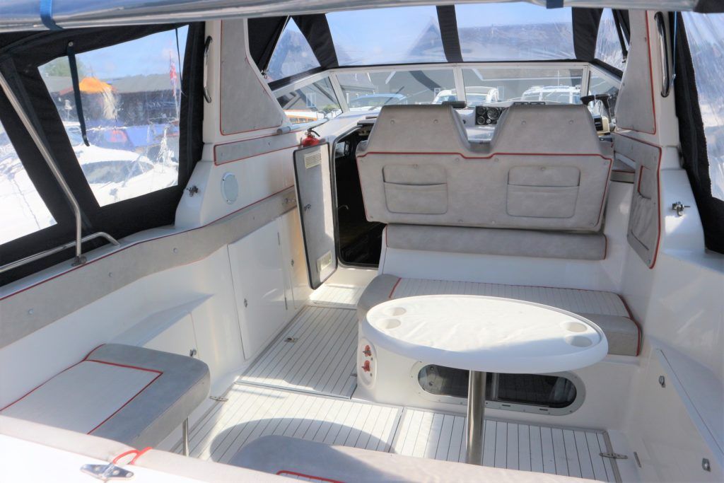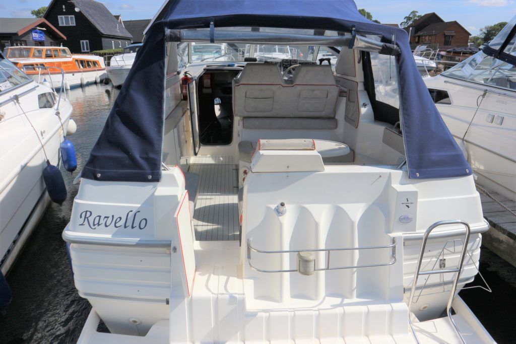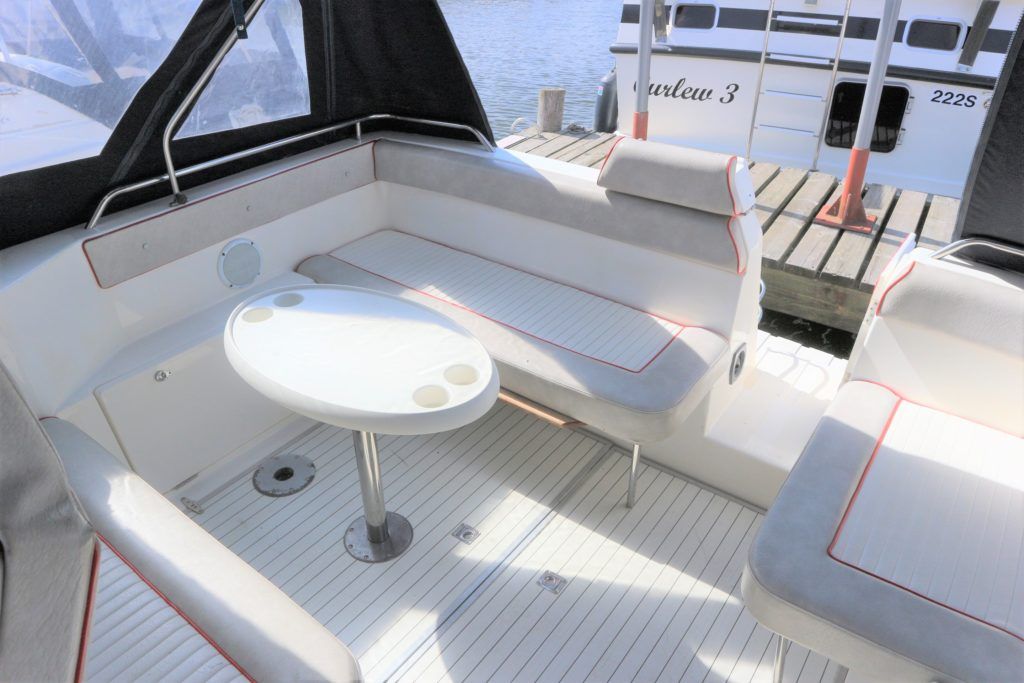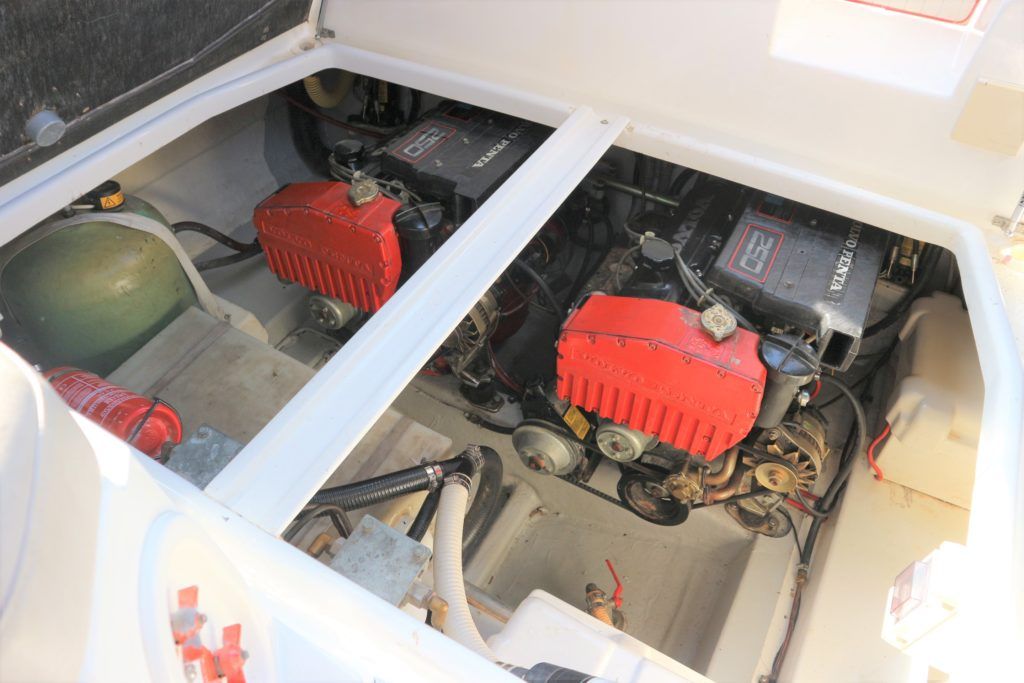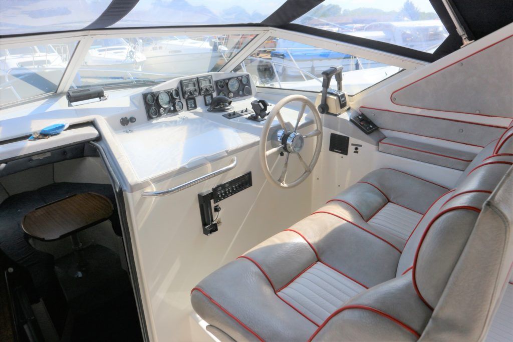 SEALINE 255 – 1990 – 2 x Volvo Penta AQ250 (146hp) petrol engines. 4 berth accommodation with 1 x toilet to holding tank & shower. Galley with hob, grill, fridge and sink. Spec including battery charger, shore power, immersion heater, speed & depth log, trim tabs, electric windlass. BSC 06/21 An attractive and spacious sports cruiser which offers a great package for a starter boat.