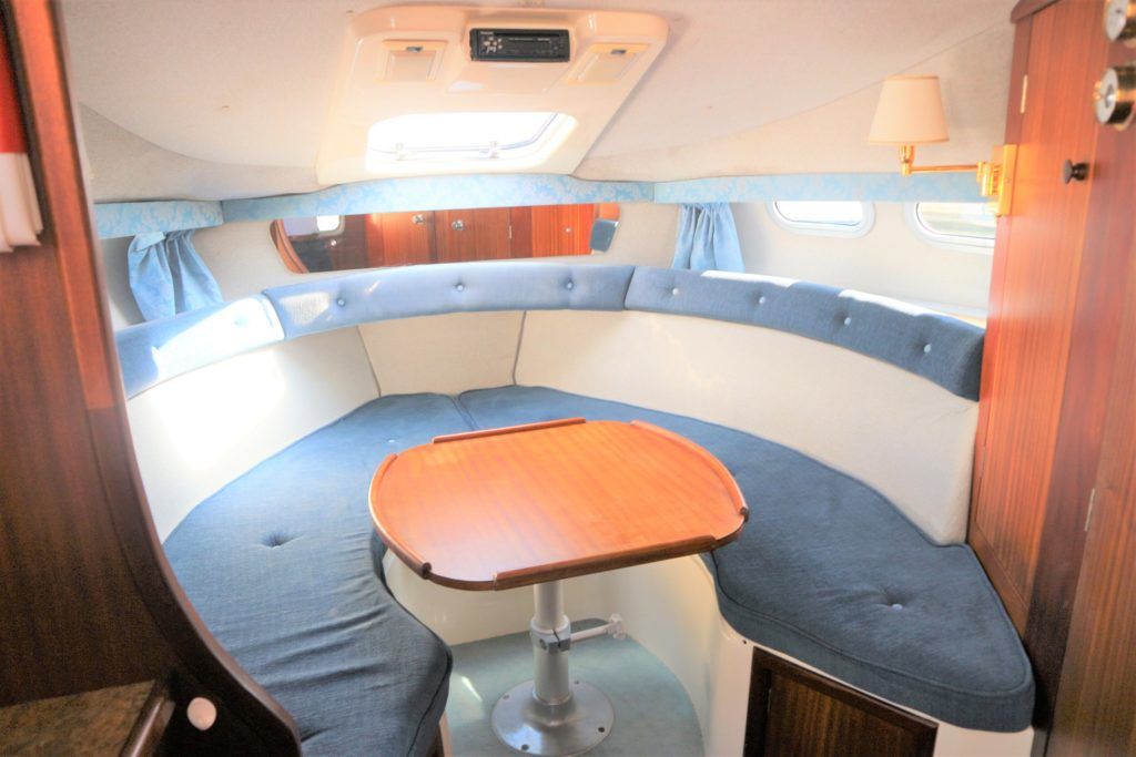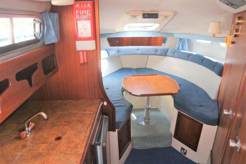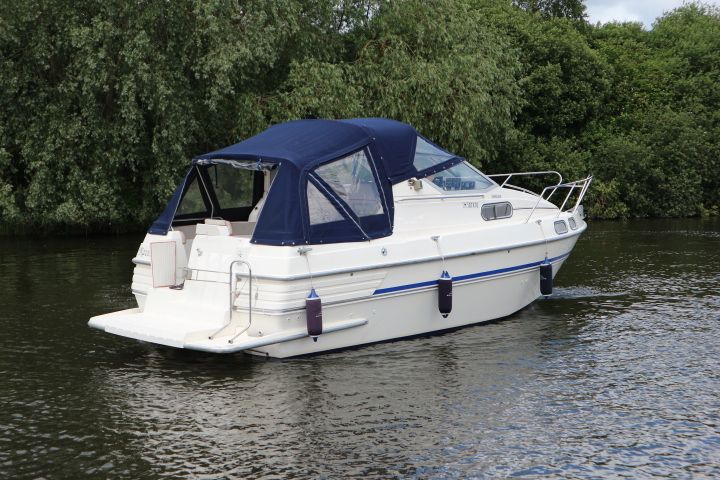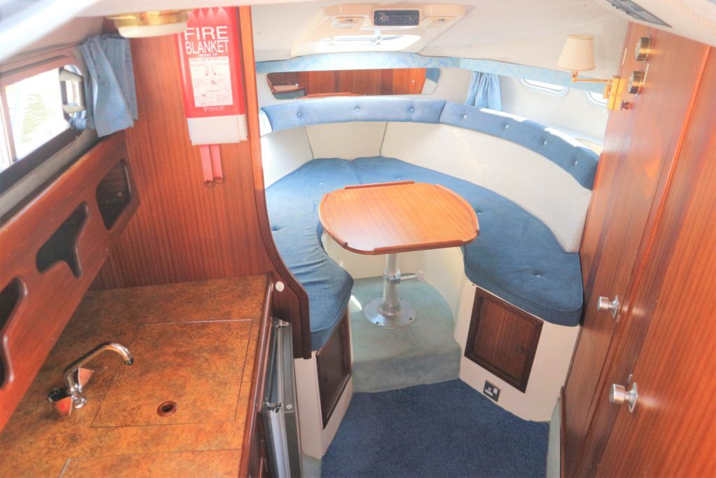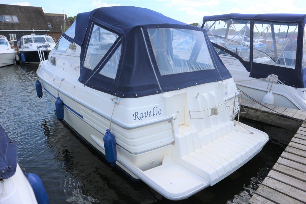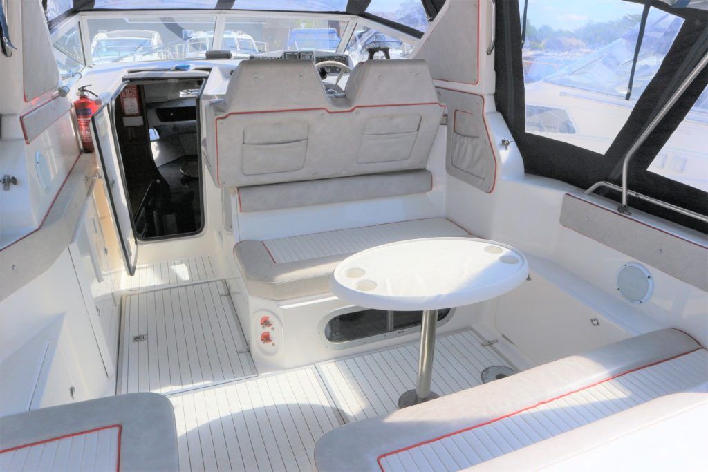 SEALINE 255 – 1990 – 2 x Volvo Penta AQ250 (146hp) petrol engines. 4 berth accommodation with 1 x toilet to holding tank & shower. Galley with hob, grill, fridge and sink. Spec including battery charger, shore power, immersion heater, speed & depth log, trim tabs, electric windlass. BSC 06/21 An attractive and spacious sports cruiser which offers a great package for a starter boat.
