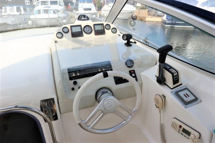 SEALINE 270 SENATOR – Built 1995 – 1 x Volvo 4.3GS 205hp petrol engine. 4 Berth accommodation in cabin & saloon, 1 x toilet to holding tank and shower.  Spec including shore power, battery charger, immersion, electric windlass, warm air heating, speed & depth log, VHF, synthetic teak decking to cockpit and bathing platform. An extremely tidy example of these comfortable sports cruisers with a great sociable cockpit. Early viewing is recommended!