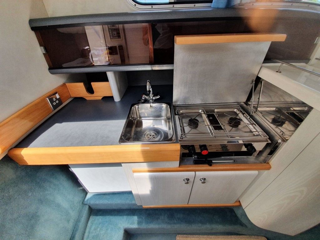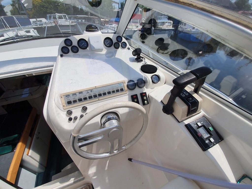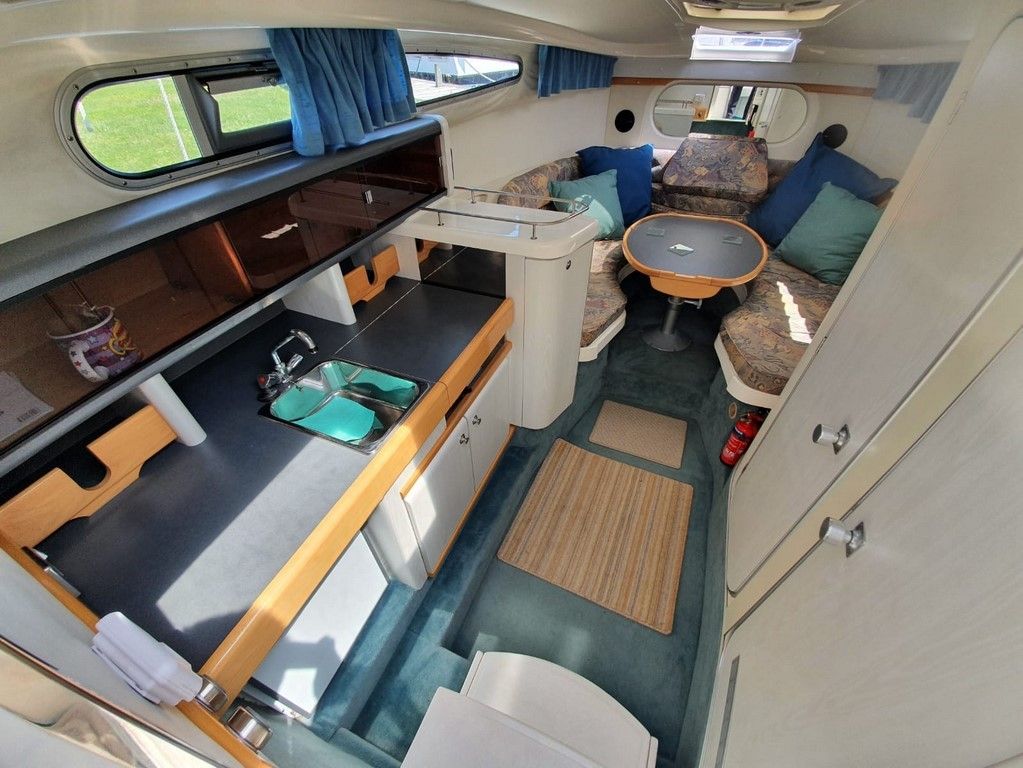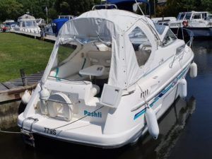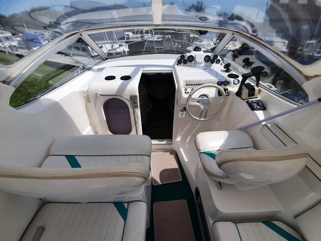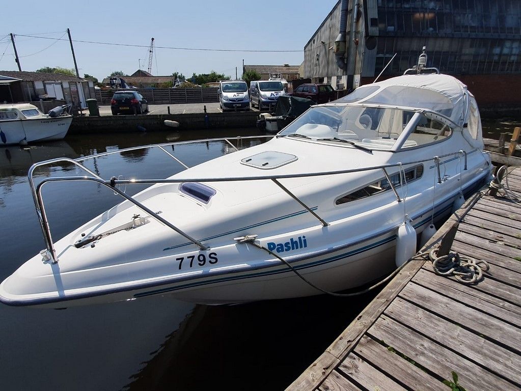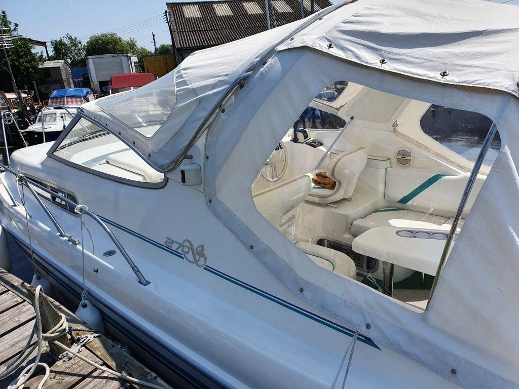 SEALINE 270 – Circa. 1994 – Powered by twin Volvo AQ250 through sterndrives. 4 berth accommodation with toilet and shower. Specification to include; Electric windlass, Eltrim trim tabs, shore power with battery charger and 240v immersion, VHF, autohelm tridata, Antifoul, hull polish plus new bellows and seals to the sterndrives 2019. Engine service and 3 new batteries. New BSC until 2023. Presented in very good order benefiting from plenty of recent investment by her current owner, a nice example!