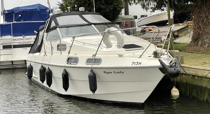 SEALINE 285 AMBASSADOR – 1989 – Powered by twin Volvo AQ205A (205hp) petrol’s through sterndrives – 4 berth accommodation with toilet and shower – Specification to include; Calorifier, trim tabs, shore power supply with 240v sockets, Garmin GPS, VHF, 2 burner hob, oven, grill. Hinged radar arch for increased inland access. Priced to reflect condition!